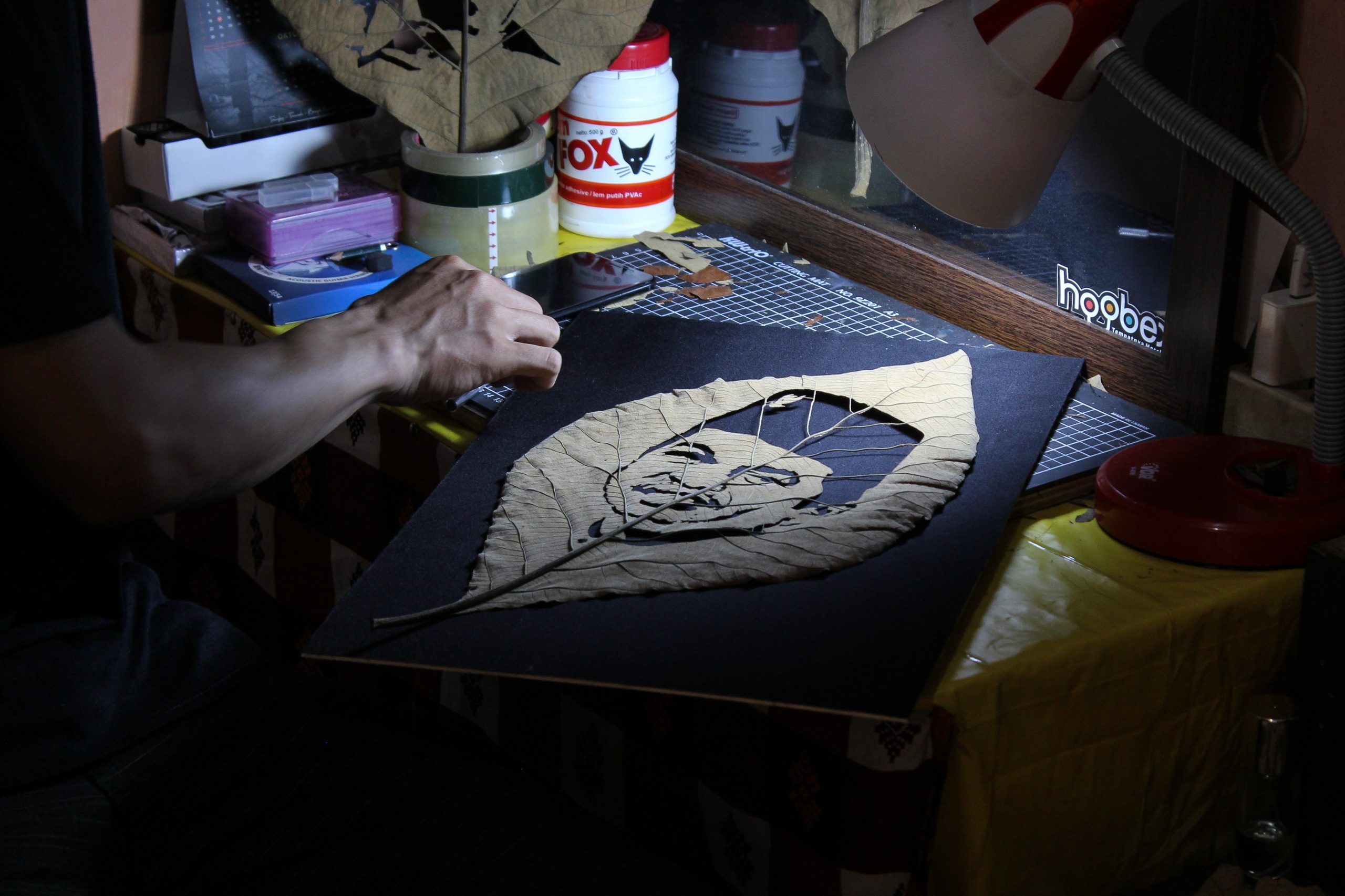 Foto: Seni Lukis Wajah Dari Daun Jati Kering