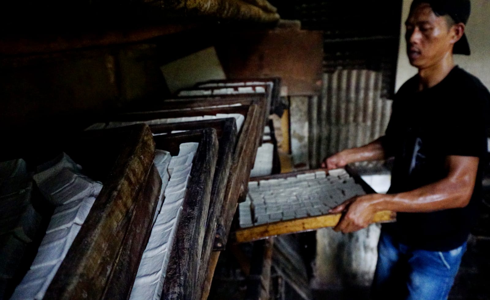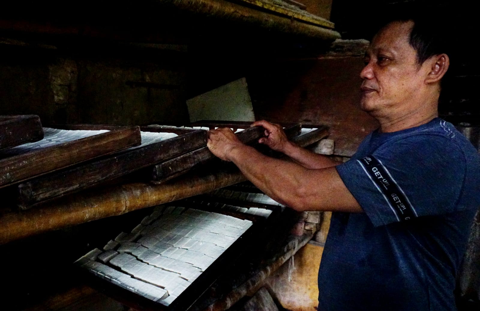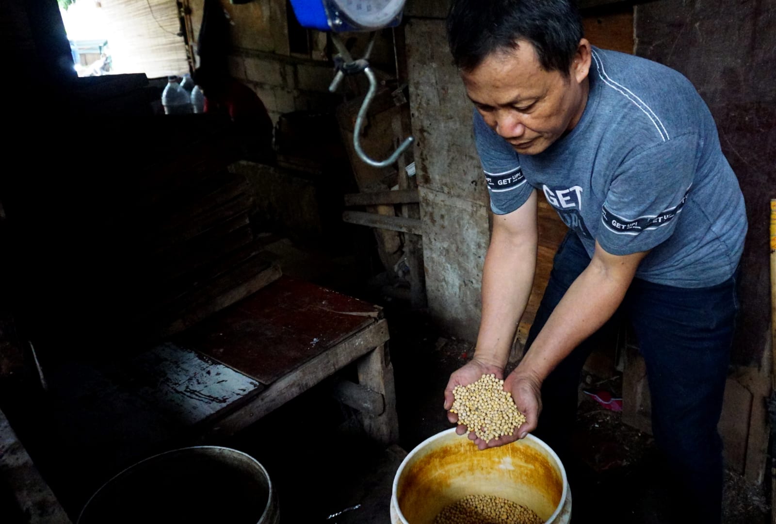 Kenaikan harga Bahan Bakar Minyak (BBM) yang baru beberapa Minggu ini membuat semua harga harus ikut menyesuaikan kanaikan tersebut. Seperti yang di rasakan para pengusaha tahu dan tempe, mereka dipaksa untuk memutar otak agar tetap bisa berjalan, sedangkan harga jual produknya belum bisa dinaikan, seperti yang di alami Tomi pembuat tahu yang berada di Kelurahan Karawaci Kecamatan Karawaci Kota Tangerang ini, ia terpaksa mensiasatinya dengan mengurangi belanja kayu yang menjadi bahan bakar utama dalam pembuatan tahunya. Senin (12/9/22). Megatrust/Dennys