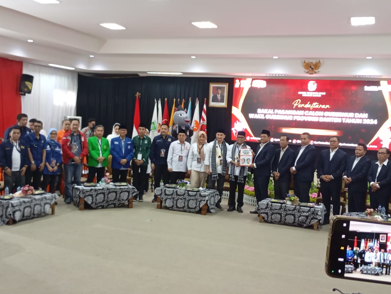 Kedatangan Andra Soni – Dimyati dalam rangka pendaftaran bakal calon gubernur dan wakil gubernur provinsi Banten dalam kontestasi pilkada 2024.
