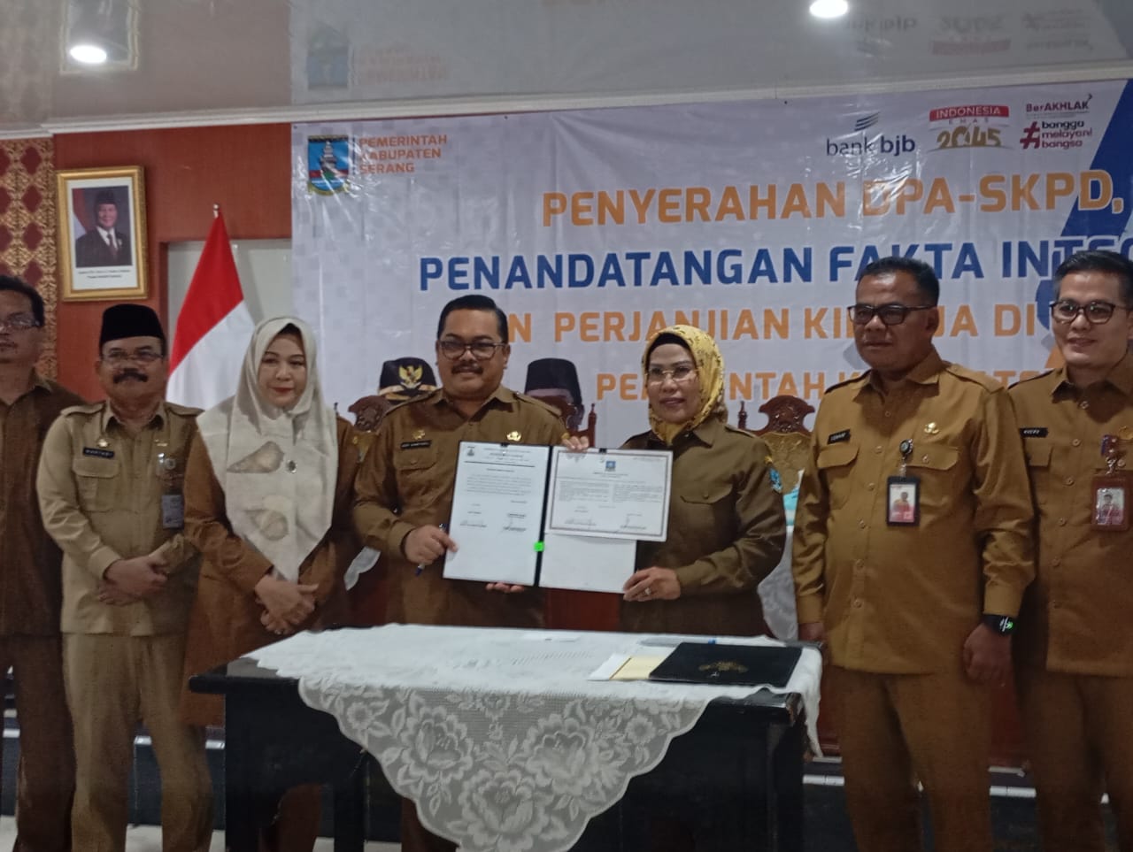 Acara yang dilaksanakan di Aula TB. Suwandi pada Senin 3 Februari 2025 itu juga bersamaan dengan penandatanganan fakta integritas dan perjanjian kinerja di lingkungan Pemkab Serang.