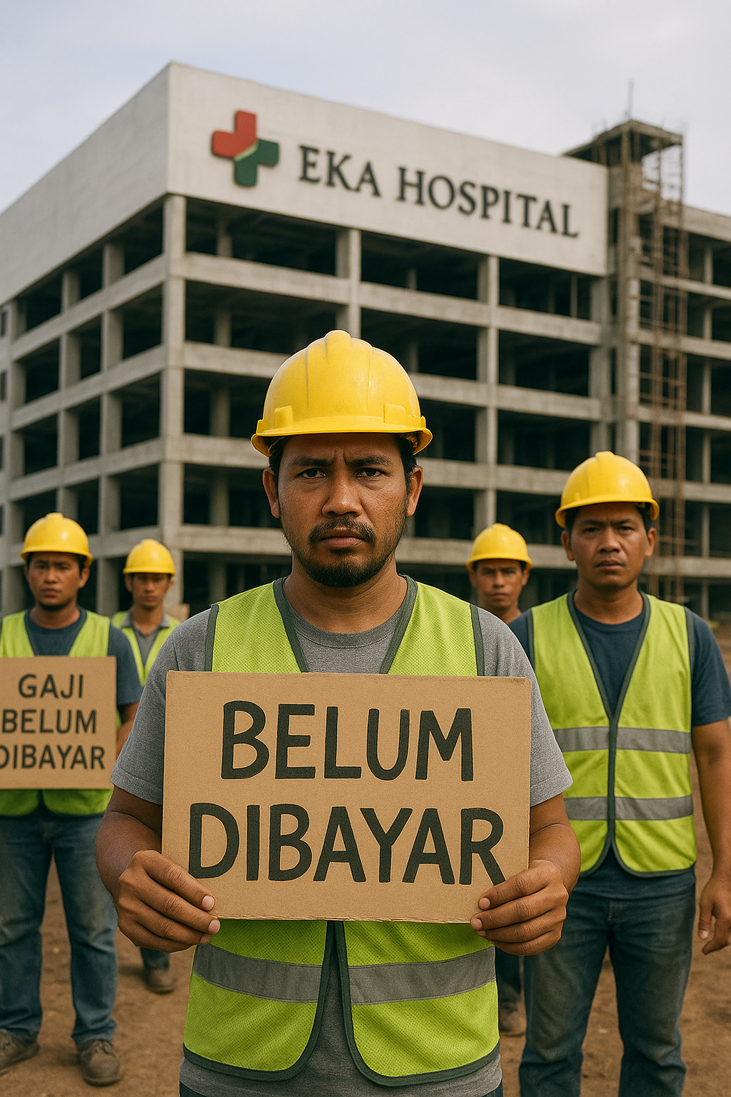 “Minggu lalu ada 4 pekerja proyek Eka Hospital tinggal di rumah saya. Seharusnya hari Sabtu/Minggu mereka gajian, tapi ternyata uangnya dibawa kabur sama mandor/perusahaan,” kata Siti saat dikonfirmasi, Kamis 2 Oktober 2025 malam.