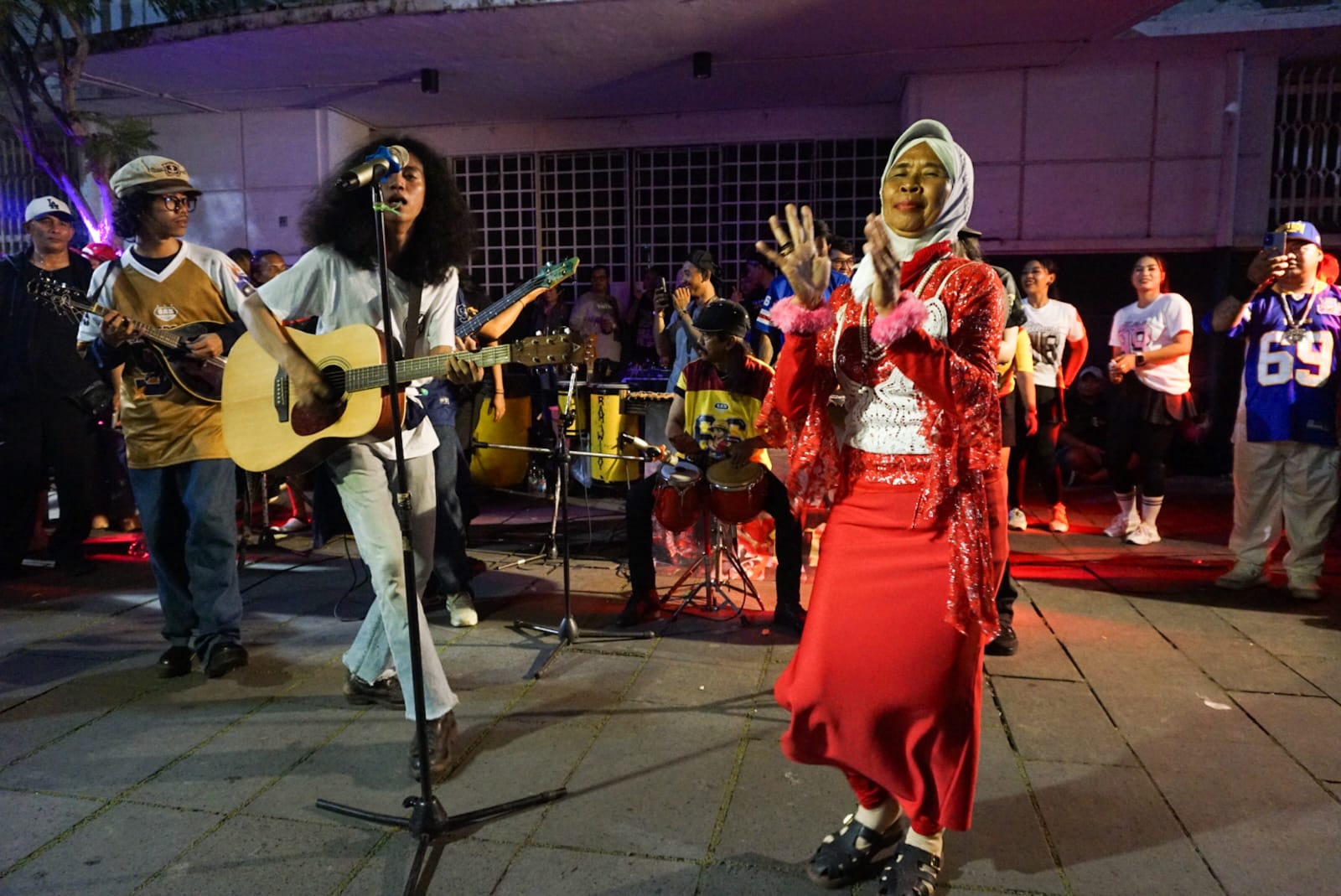 Para peserta menampilkan berbagai aksi seni, musik jalanan, serta penyerahan jersey simbolik sebagai tanda terima kasih kepada pemerintah. (Cep/Red)