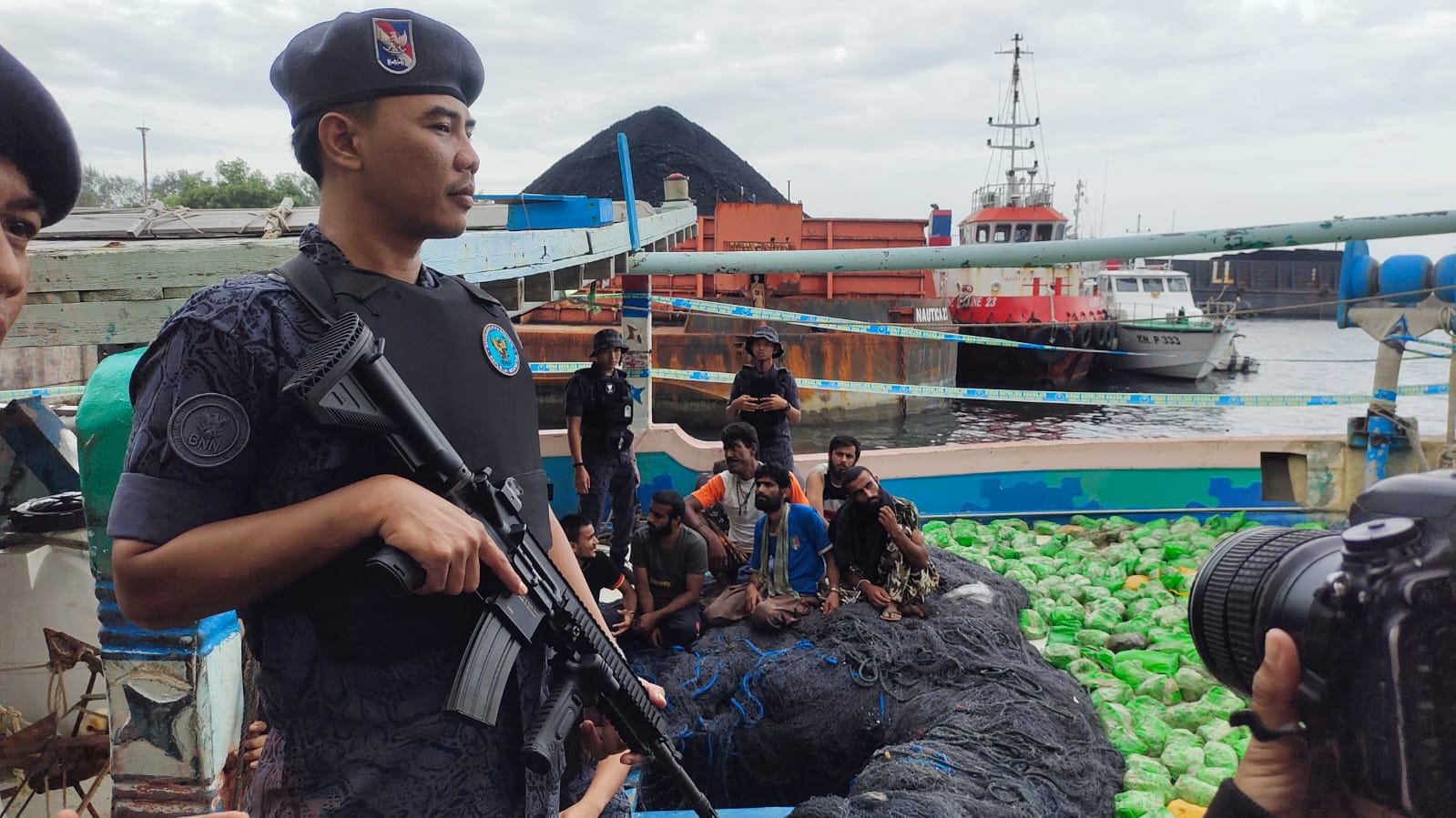 Informasi yang didapat Megatrust.co.id, BNN dan Beacukai telah meringkus 8 orang anak buah kapal yang berada di atas kapal nelayan. Mereka, kedapati membawa barang diduga sabu-sabu sebanyak 15,5 karung atau sebanyak 309 bungkus.
