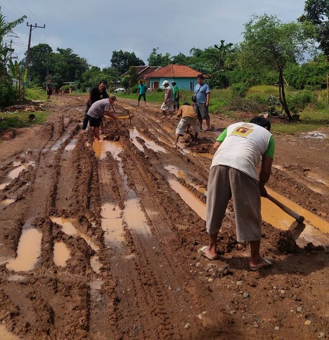 Megatrust.co.id, LEBAK – Warga Desa Mekarsari, Kecamatan Rangkasbitung, Kabupaten Lebak, Banten, bergotong royong memperbaiki jalan desa yang rusak akibat aktivitas tambang ilegal.