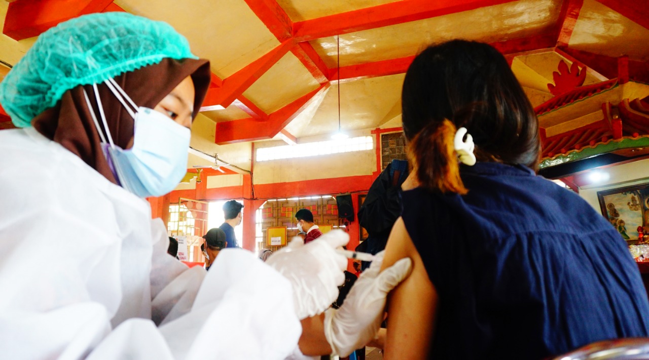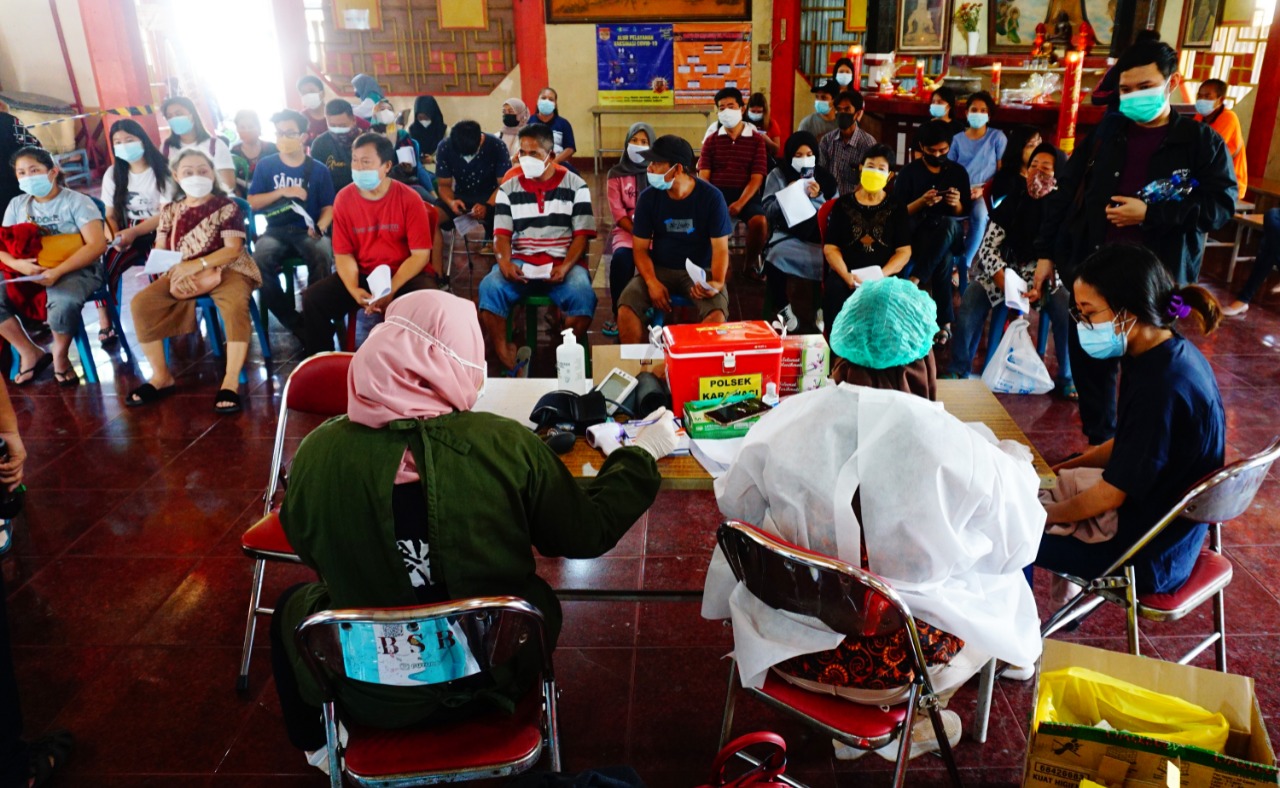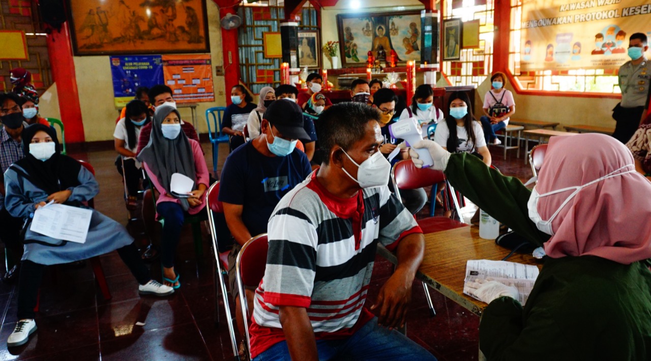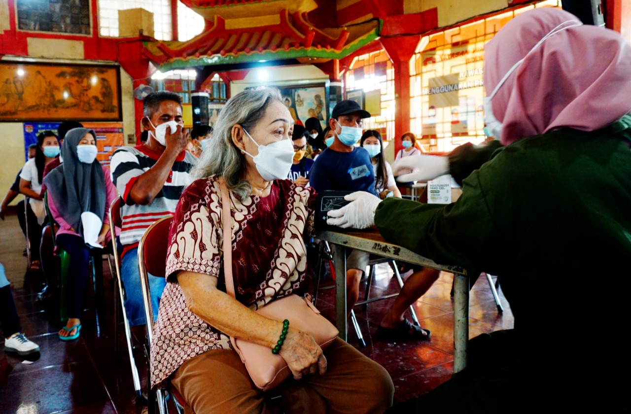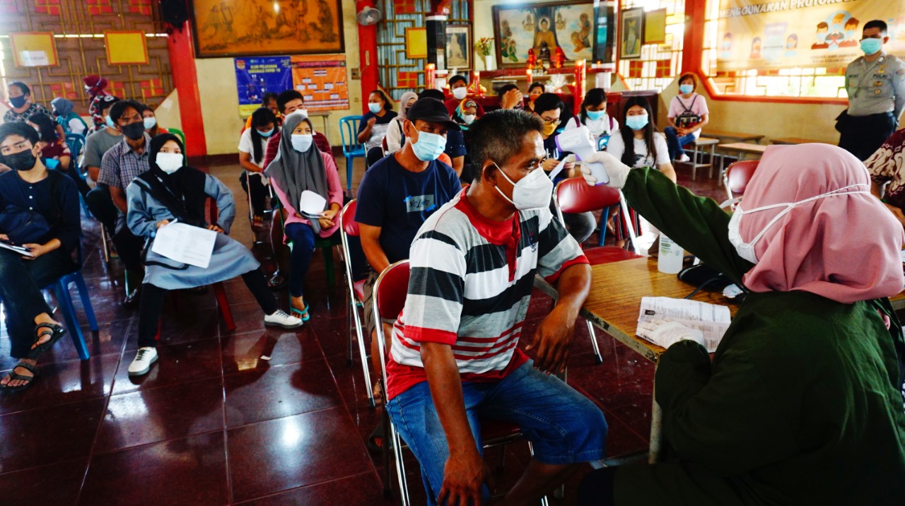 Foto: Antusias Warga Ikuti Vaksinasi di Kelenteng Boen San Bio