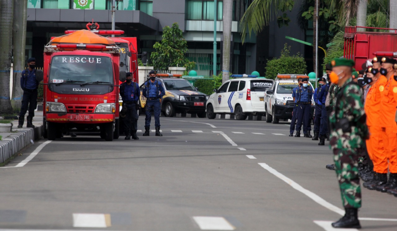Persiapan menghadapi Bencana Pemerintah Kota Tangerang adakan apel siaga bencana guna mempersiapkan segala sesuatunya, mulai dari sumberdaya manusia hingga peralatan yang akan menunjang kinerja baik pegawai maupun relawan kebencanaan, terlihat walikota tangerang memimpin apel siaga bencana tingkat kota di Taman Elektrik Halaman Kantor Puspem Kota Tangerang. Usai menjalan kan upacara walikota bersama para pejabat di lingkup pemerintahan memeriksa kesiapan pasukan dan peralatan. Selasa (16/11/21). Megatrust/Dennys
