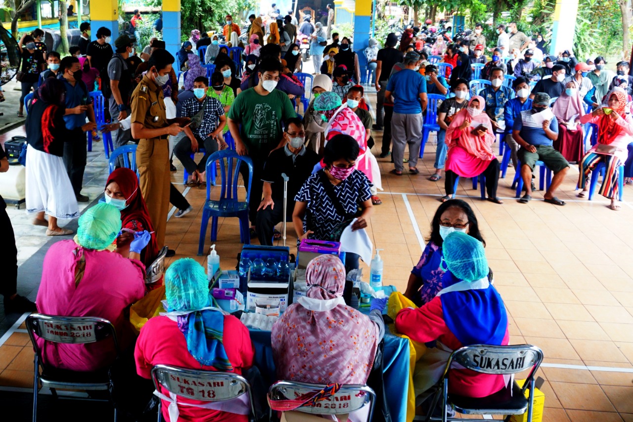 Foto: Bulan Vaksinasi, Antusias Warga Antri Ingin di Vaksin