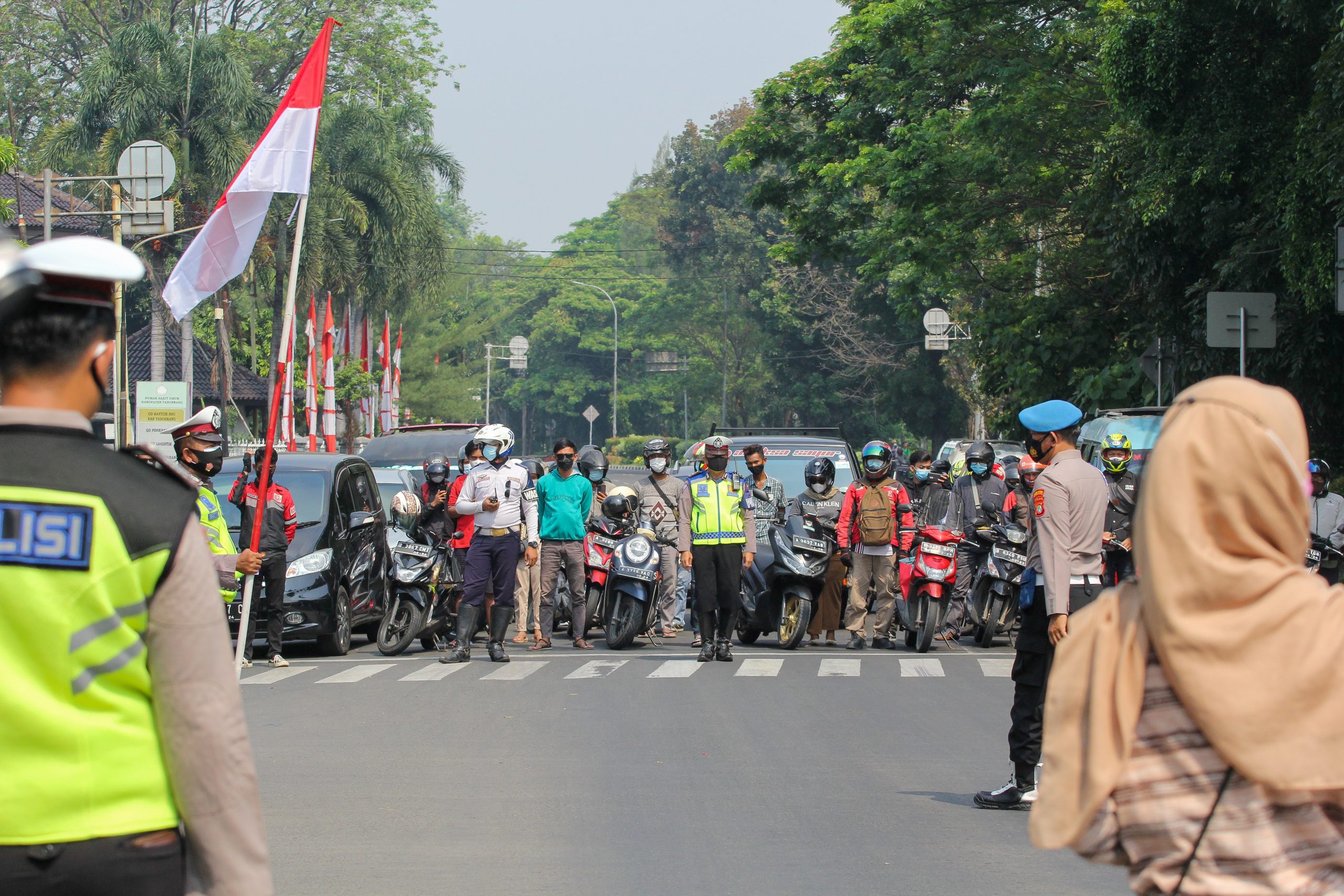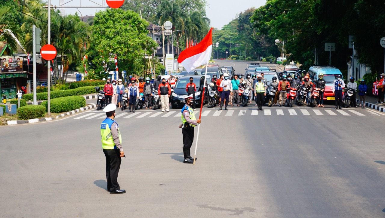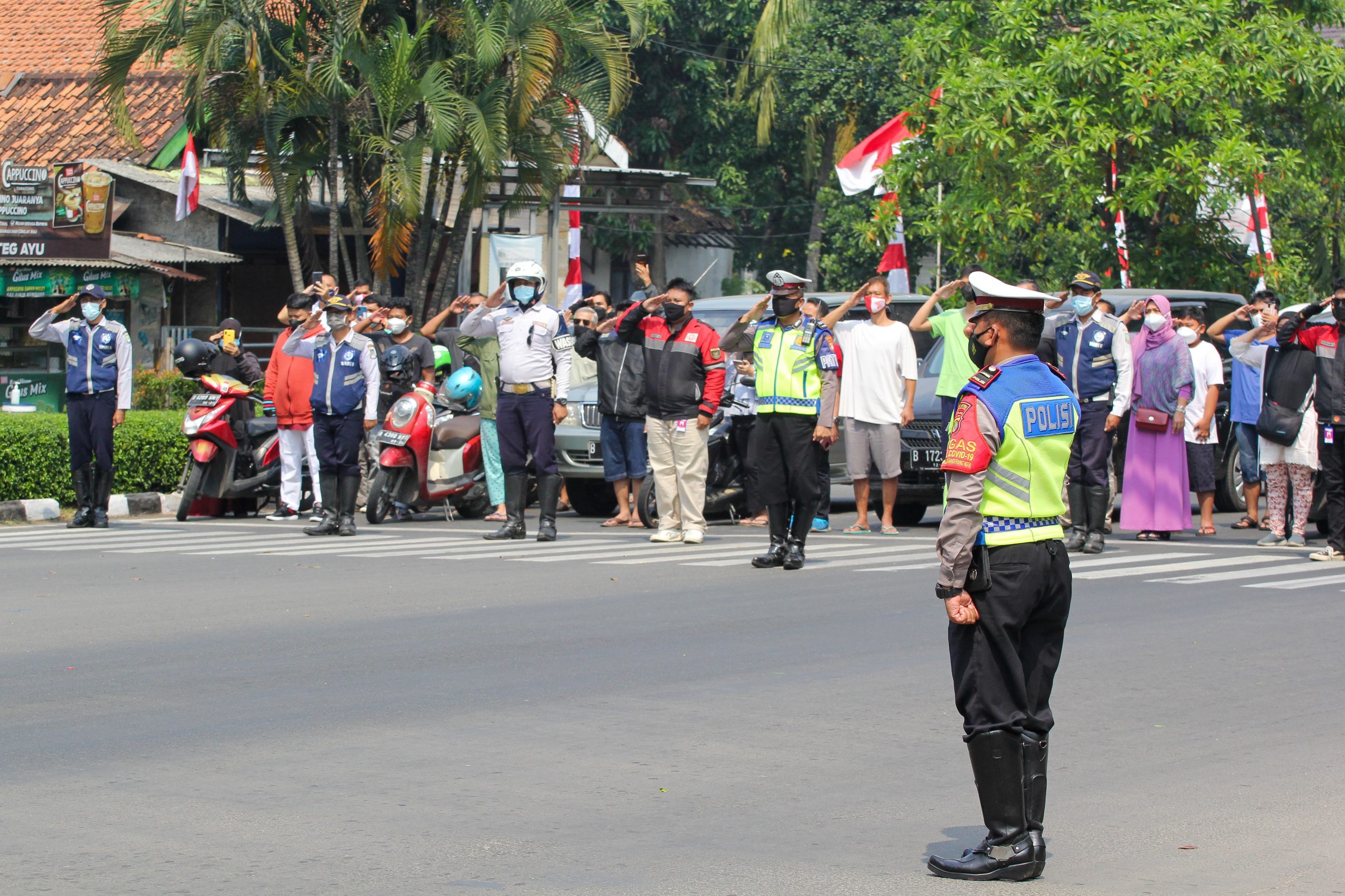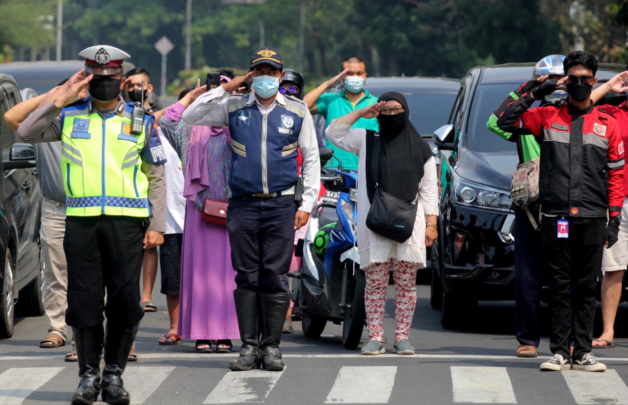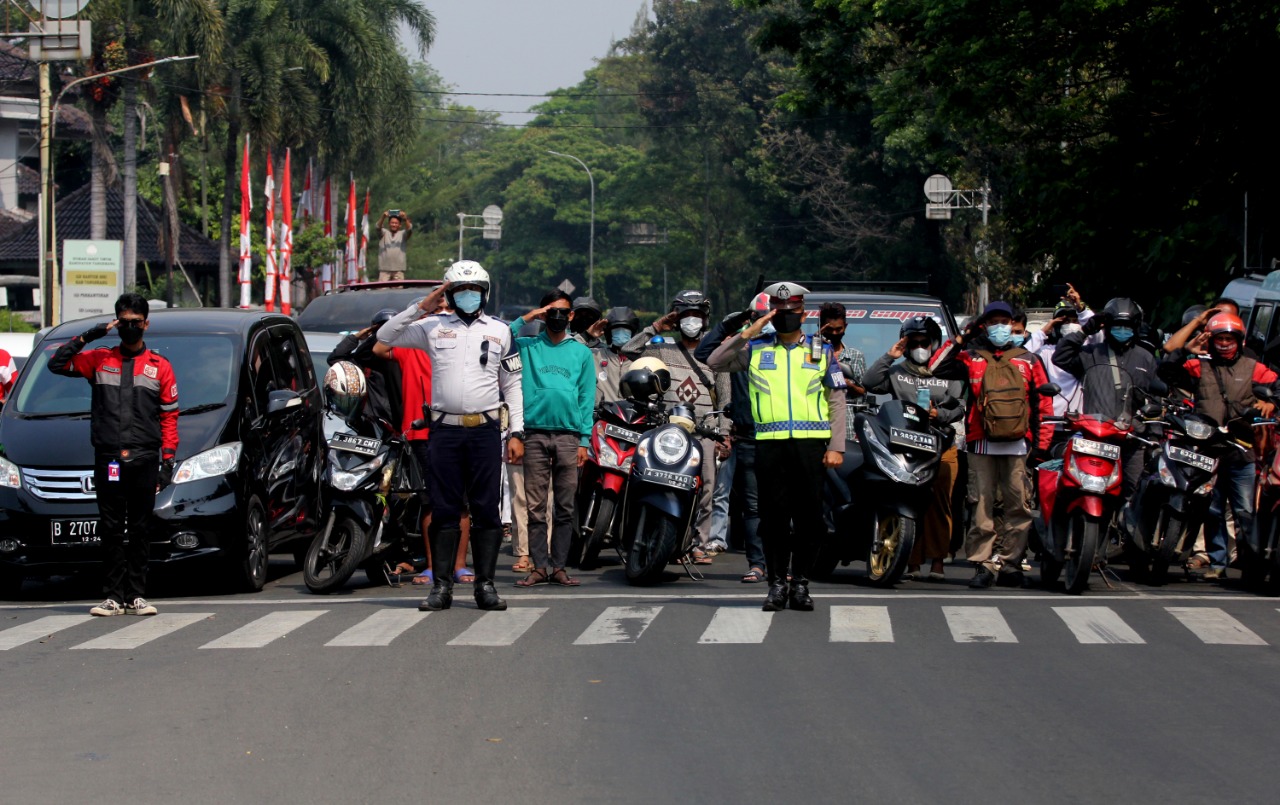 Foto: Detik Detik Proklamasi, Seluruh Pengguna Jalan Hormati Bendera Dengan Hikmat