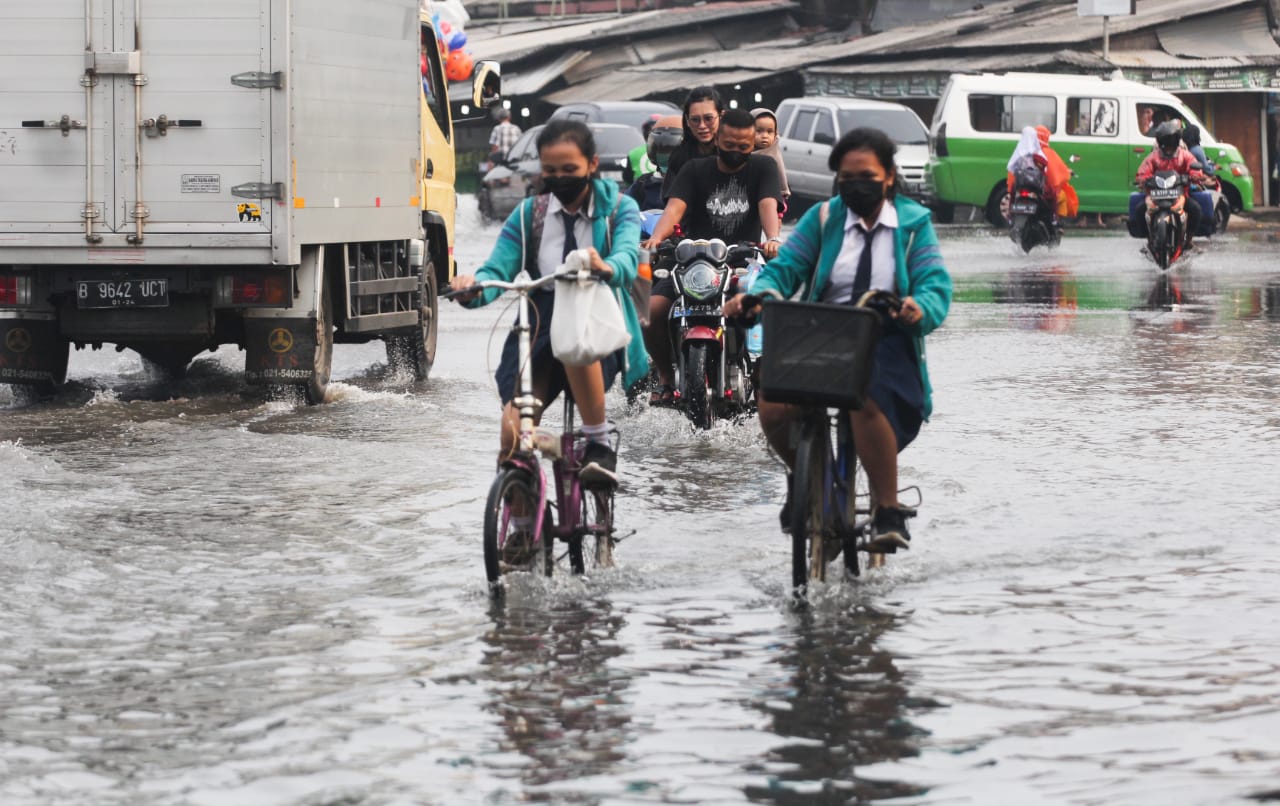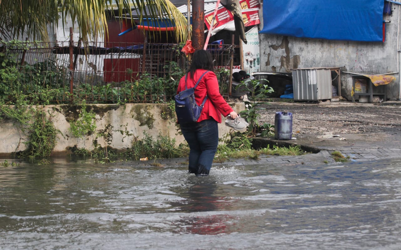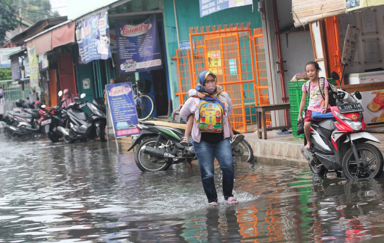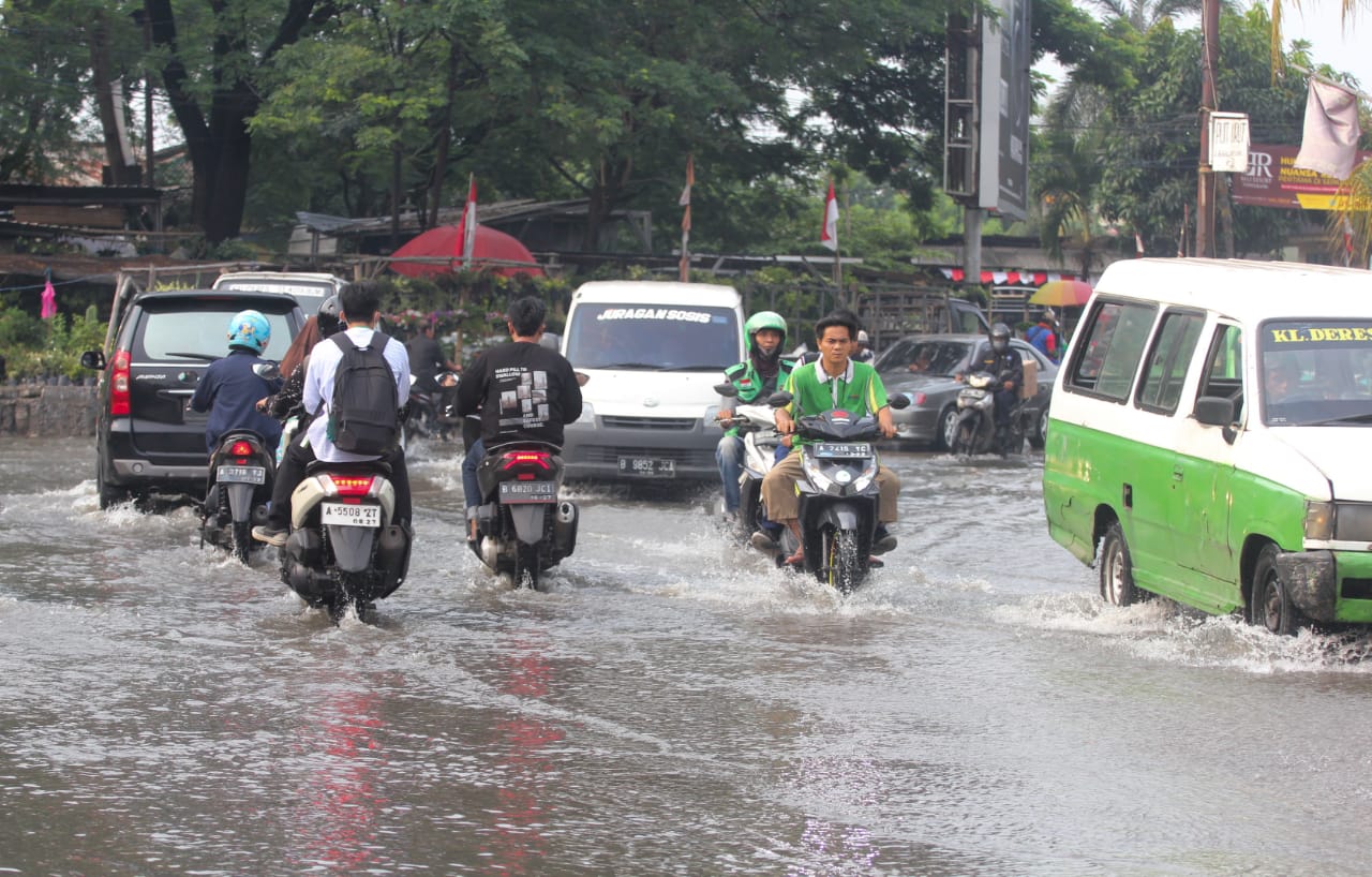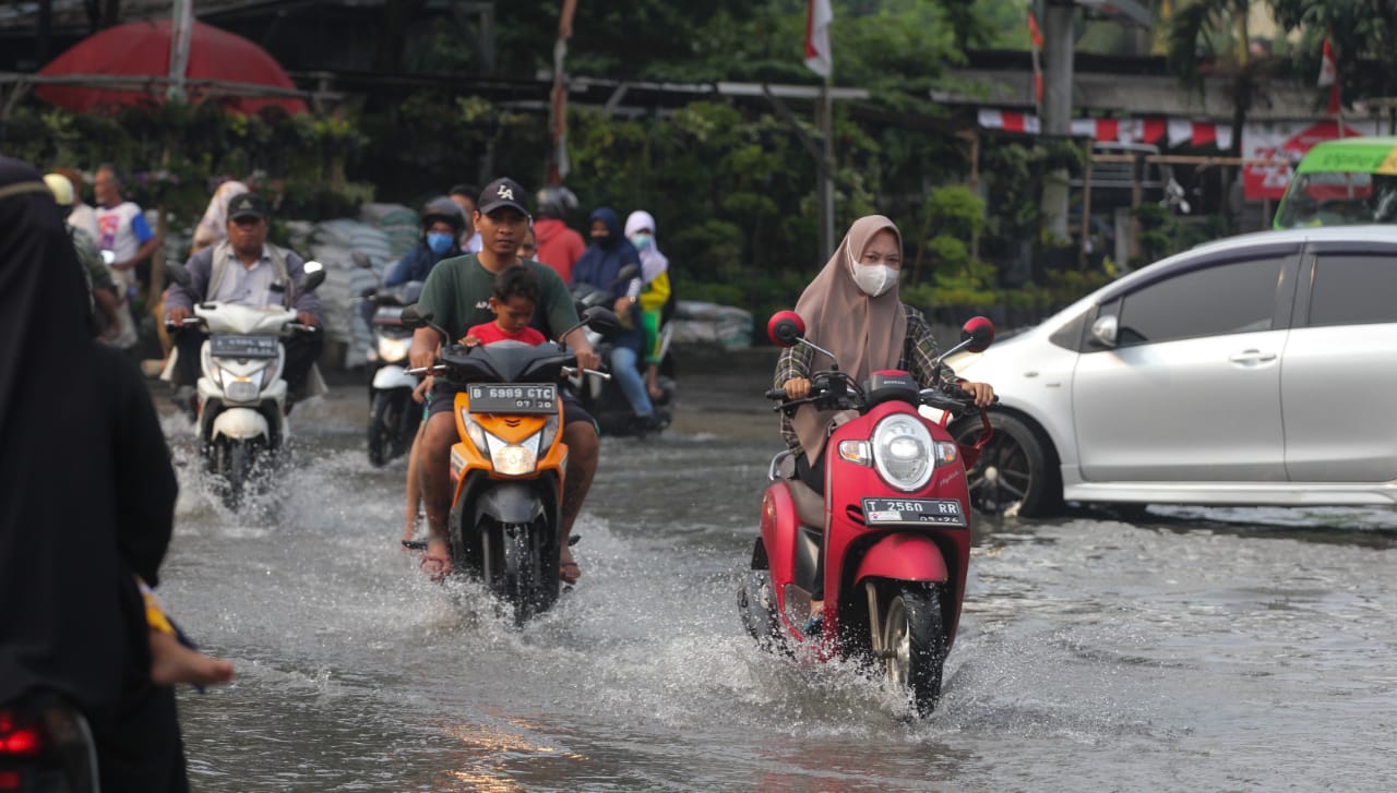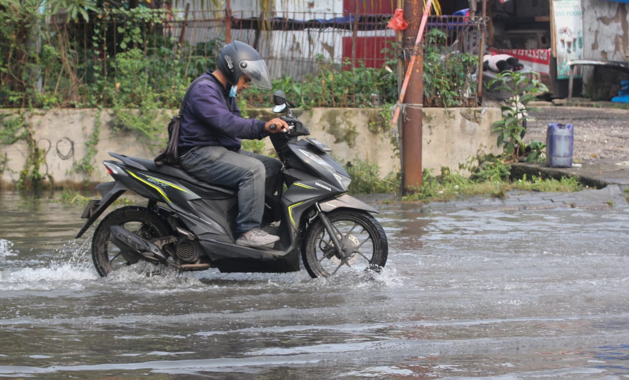 Foto: Genangan Air Hambat Lalulintas Jalan Perumahan Kuta Bumi