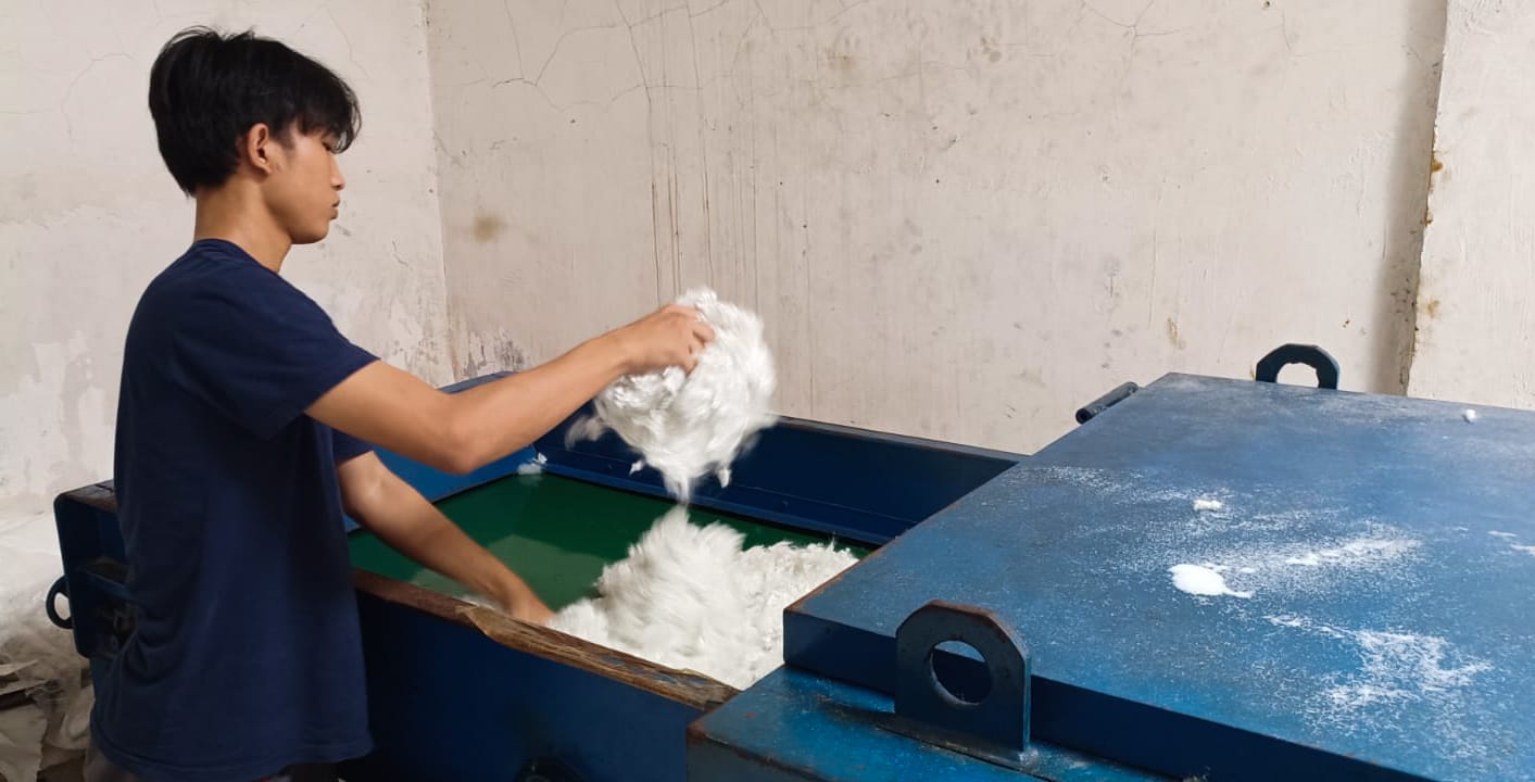 Memanfaatkan botol bekas air mineral jadi bantal dan guling yang memiliki nilai ekonomis. Seorang pengusaha bantal ini memanfaat limbah barang bekas botol plastik bekas air mineral menjadi kapas sintetis yang digunakan sebagai bahan baku pembuatan bantal dan guling. Eko setyobudi yang merintis usaha bersama temannya sejak tahun 2018 lalu kini mulai kembali produksi yang mana sempat berhenti saat pandemi lalu. Bantal dan Guling yang di beri merek Shofia ini di produksi di Pondok Ungu Permai sektor 5 J13 no.16 Bekasi Utara. Dalam pemasarannya saat ini sudah mencapai wilayah Sukabumi Jawabarat. Minggu (12/2/23). Megatrust/Dennys