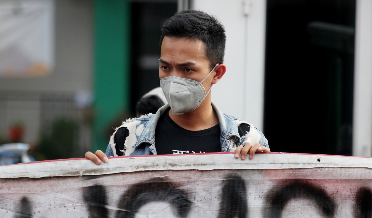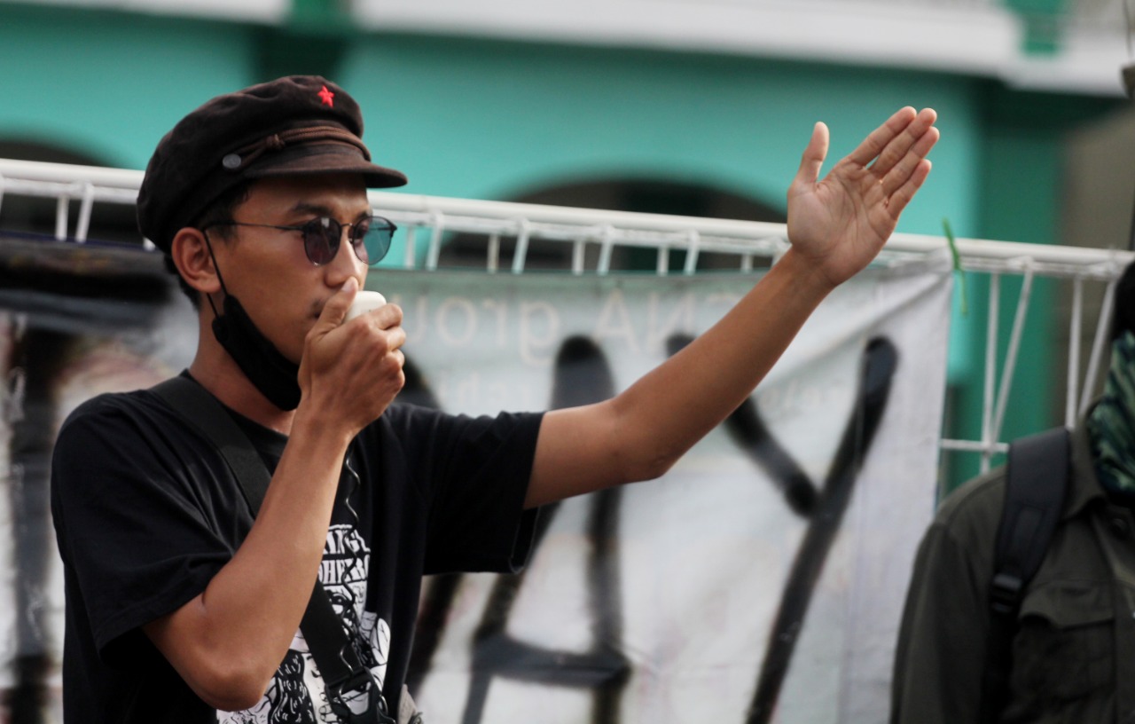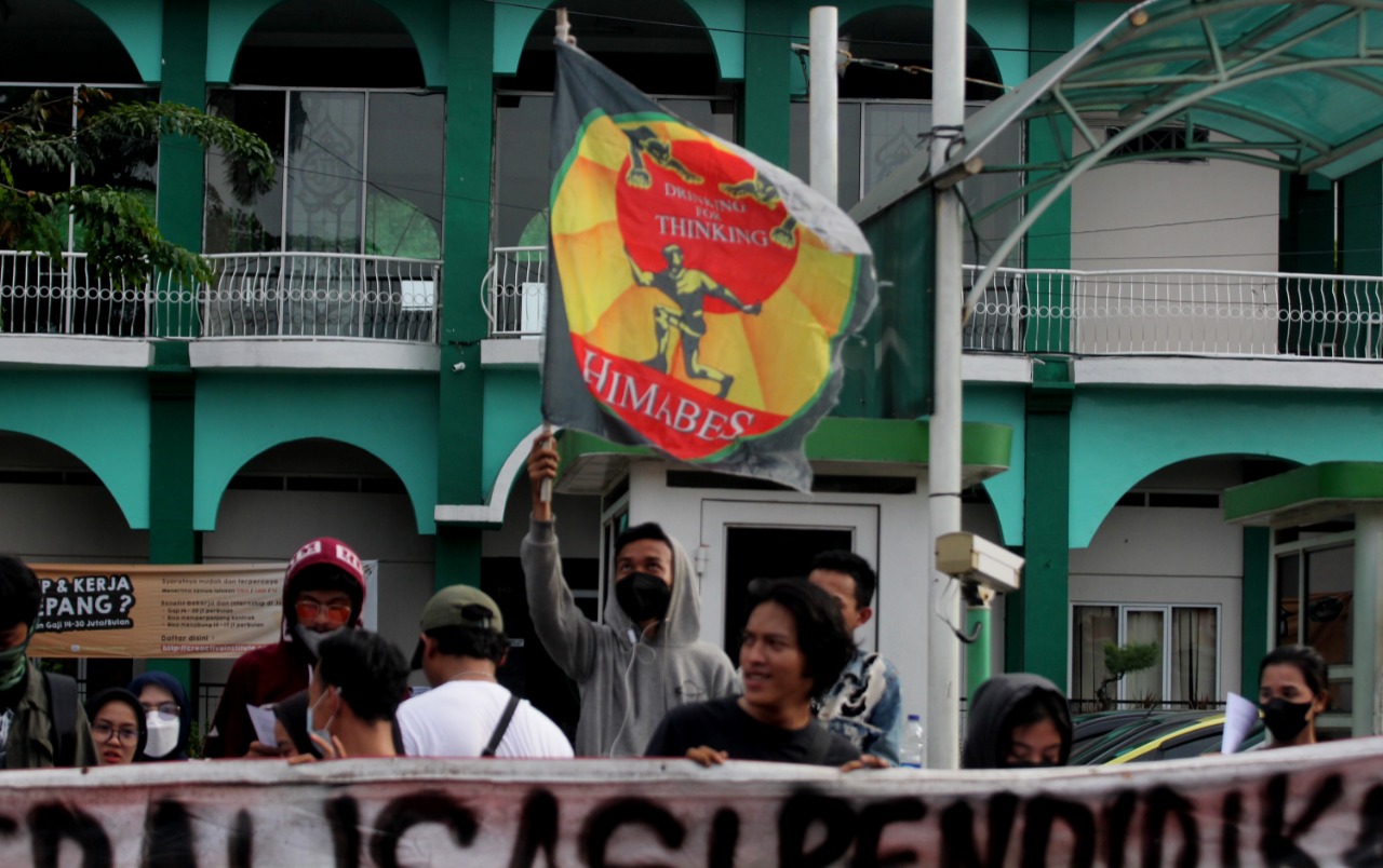 Internasional Student Day 2021 di warnai unjuk rasa mahasiswa Universitas Islam Syekh Yusuf (UNIS) Tangerang di Jalan Maulana Yusuf No.10 Kota Tangerang, sebanyak puluhan mahasiswa menuntut kepada pemerintah daerah maupun pusat untuk mewujudkan Pendidikan Gratis, Ilmiah dan Demokratis. Dalam aksi tersebut terlihat beberapa aparat keamanan baik dari kampus maupun Polisi melakukan penjagaan dan mengatur lalulintas agar tidak mengundang kemacetan. Rabu (17/11/21). Megatrust/Dennys