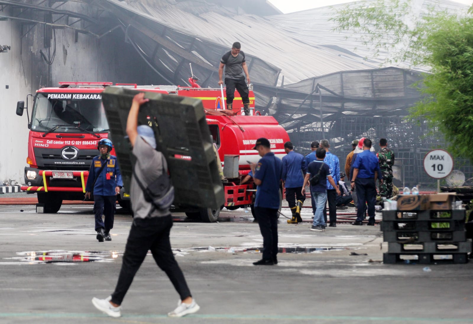 Foto: Pabrik Percetakan Minuman Terbakar, Karyawan Selamatkan Aset Pabrik