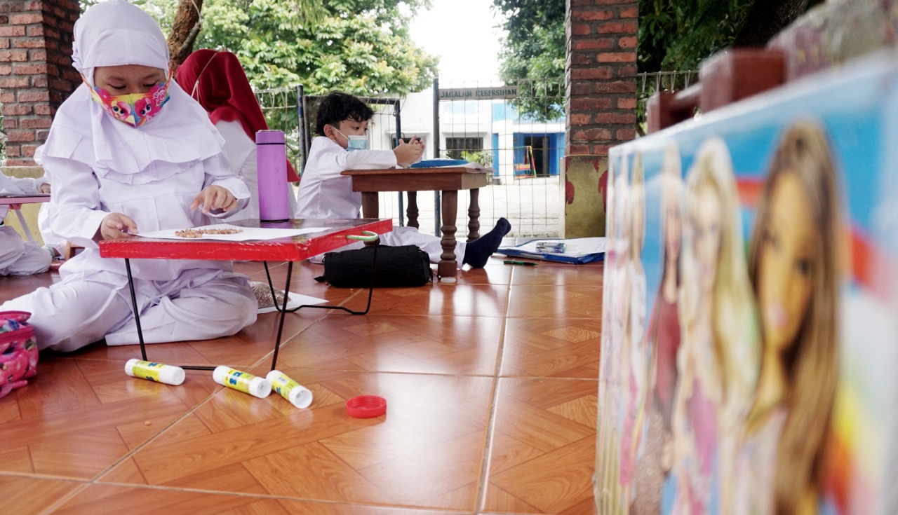 Foto: Para Murid PAUD Terpaksa Belajar di Emperan