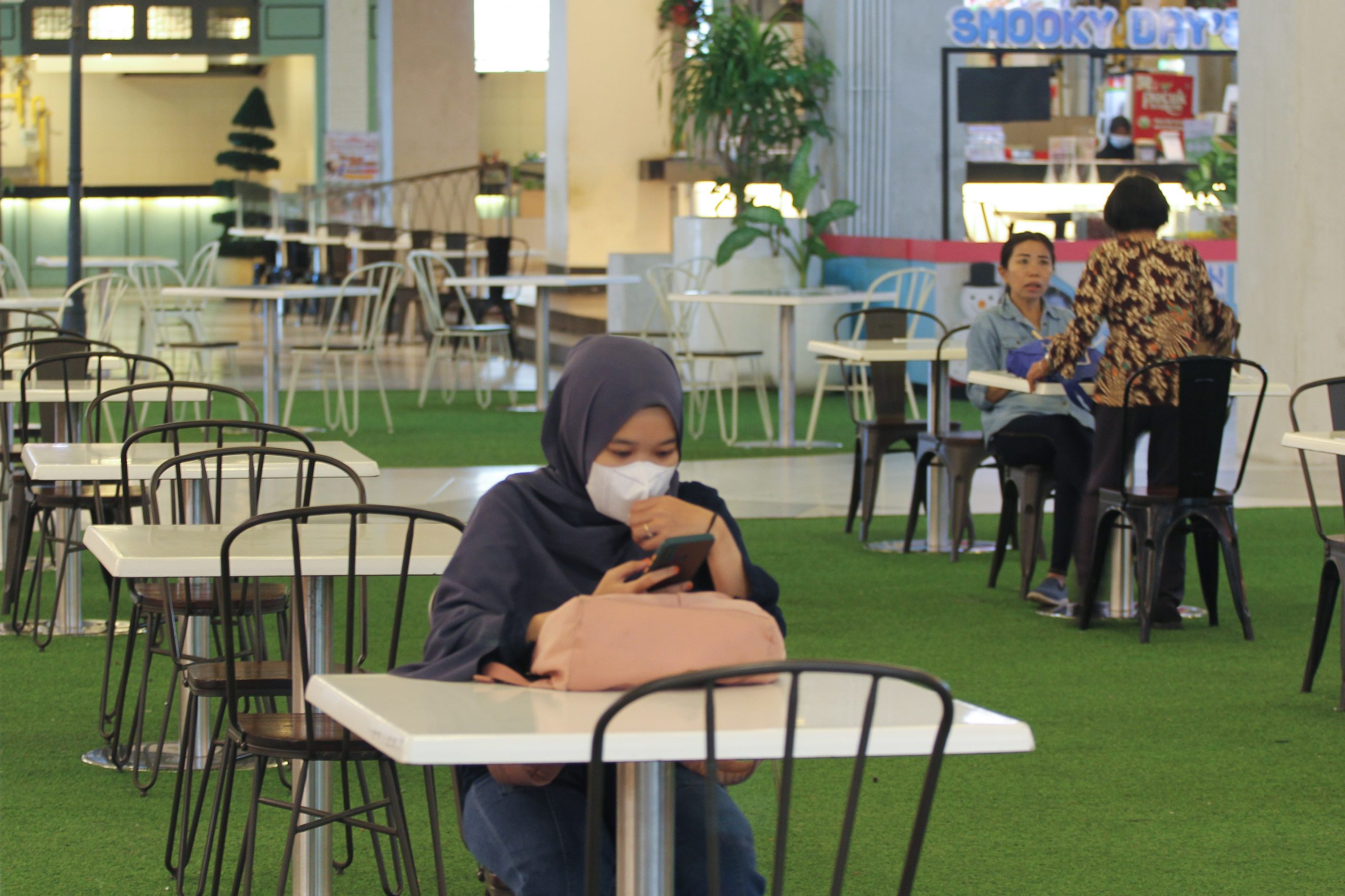 Pengunjung beraktivitas di salah satu pusat perbelanjaan di Kota Tangerang, Kamis (2/9/2021). Pelonggaran operasional bertahap untuk pusat belanja atau mall selama PPKM diperpanjang ternyata tak langsung berdampak positif terhadap tingkat kunjungan. Sejumlah segmen pusat belanja diperkirakan pulih lebih lambat, namun tingkat kunjungan ke pusat perbelanjaan saat ini lebih didorong oleh kategori makanan dan minuman. Megatrust/Cecep