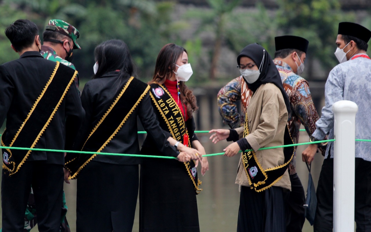 Menteri Koordinator Infrastruktur, Agus Harimurti Yudhoyono didampingi Wakil Gubernur Banten Ahmad Dimyati Natakusumah dan Bupati Tangerang Mochamad Maesyal Rasyid, bersama jajaran kementerian serta Forkopimda meninjau langsung penataan Kampung Nelayan Tanjung Anom, di Desa Tanjung Anom, Kecamatan Mauk, Kabupaten Tangerang, Banten, Kamis (16/4/2026). Sebanyak 110 rumah kini berdiri lebih layak huni di atas lahan seluas sekitar 1,3 hektare dengan skema cicilan ringan Rp140.000 per minggu selama kurang lebih empat tahun untuk masyarakat pesisir. Program ini sejalan dengan visi Presiden Prabowo Subianto dalam meningkatkan kesejahteraan nelayan. Megatrust/Cecep