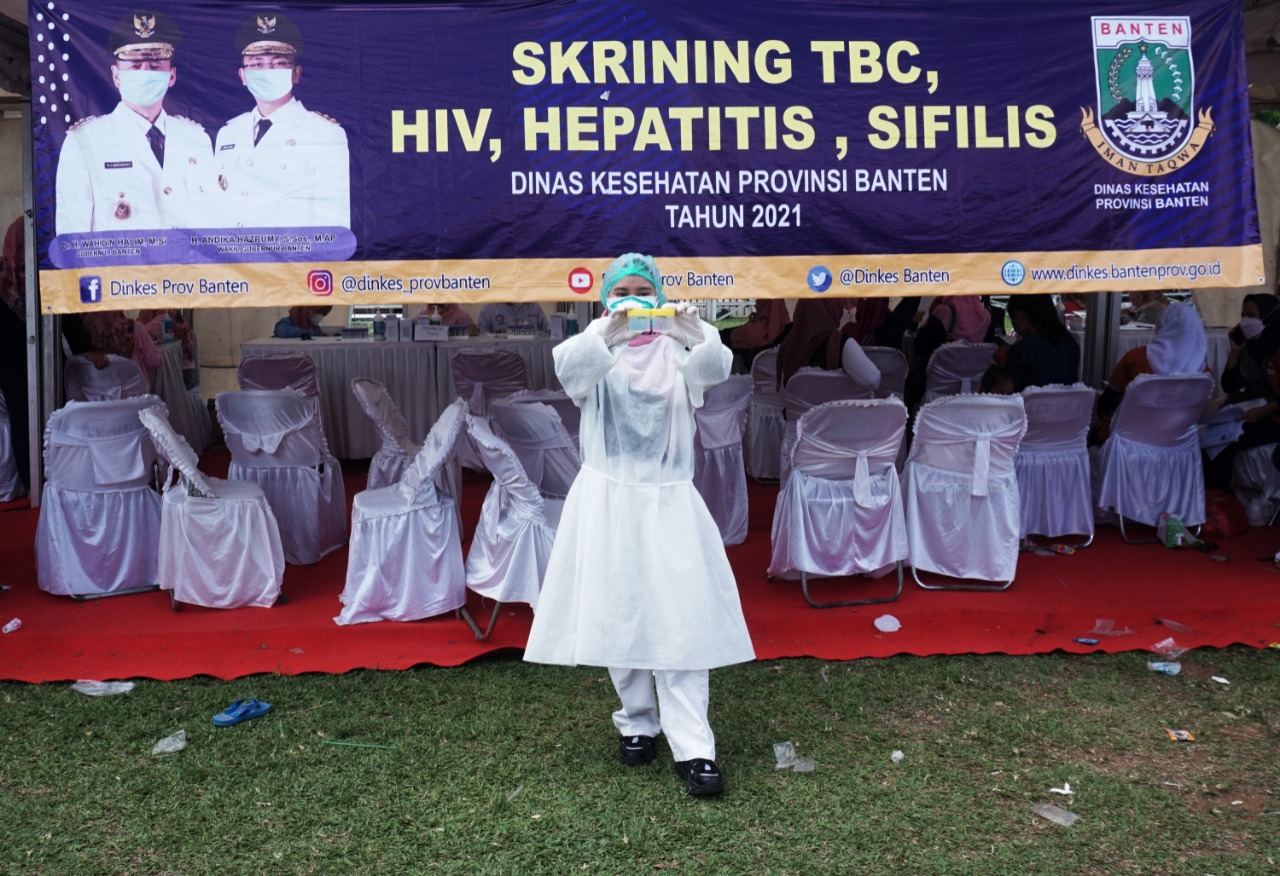 Pemerintah Provinsi Banten menggelar pengobatan geratis dalam memperingati Hari Kesehatan Nasional ke-57 tahun bagi warga Kabupaten Tangerang. Acara yang dilakukan di Lapangan Bola Kecamatan Legok Kabupaten Tangerang ini di padati warga, terlihat antrian panjang warga yang akan mengecek kesehatannya menjadi bukti antusias warga untuk melakukan cek kesehatan, terutama pengecekan kesehatan penyakit menular seperti TBC, HIV dan Sipilis, selain itu juga pemerintah Provinsi mengadakan Vaksin dan Sunat Masal. Kamis (25/11/21). Megatrust/Dennys