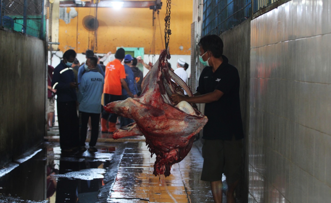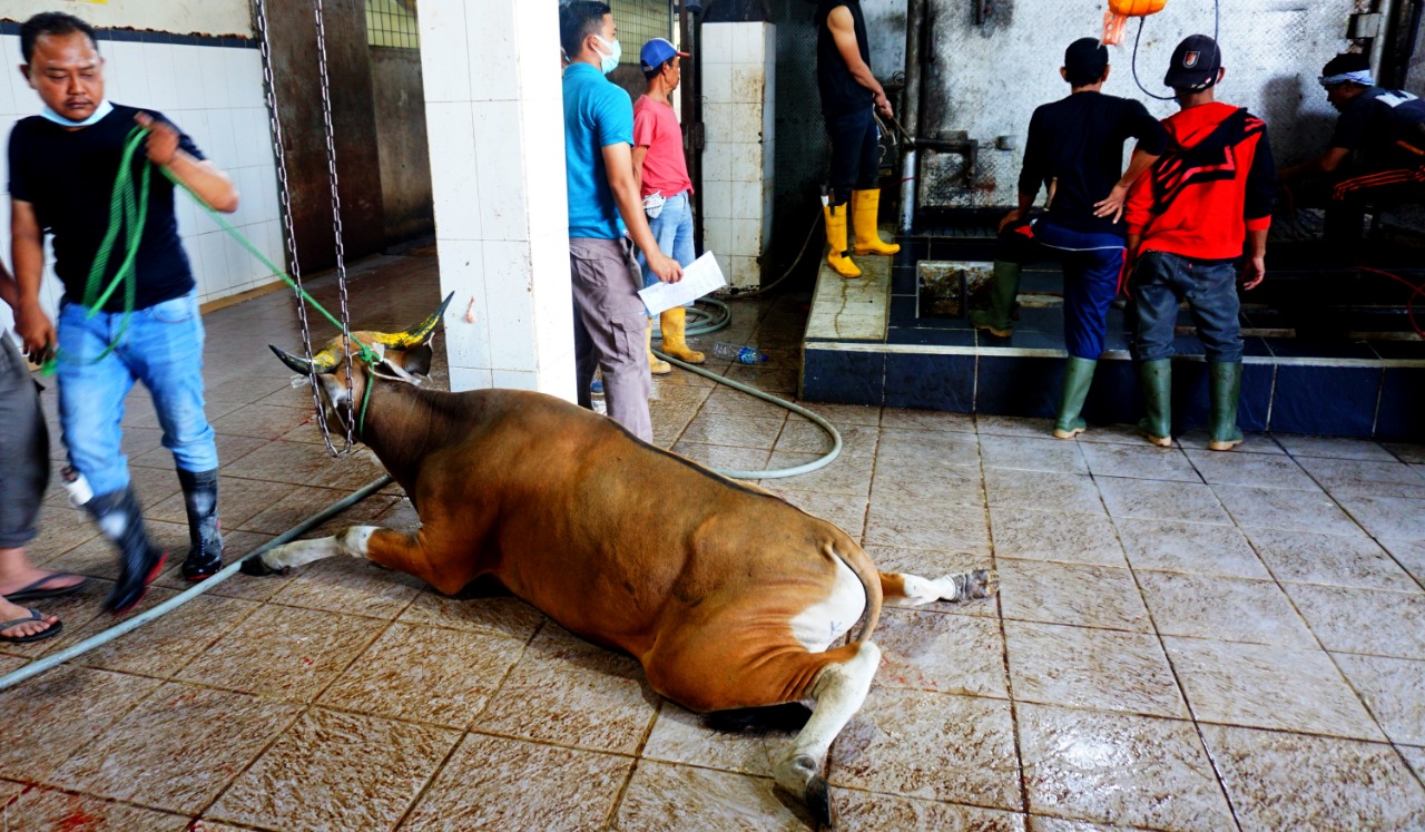 Rumah Potong Hewan Kota Tangerang mengalami peningkatan permintaan pemotongan hewan kurban hingga 100% lebih dimasa Pemberlakuan Pembatasan Kegiatan Masyarakat (PPKM) darurat di hari raya idulladha kali ini, kenaikan tersebut dikarnakan himbauan walikota tangerang agar pemotongan hewan qurban di lakukan di RPH untuk mencegah kerumunan saat pemotongan hewan qurban. Selasa (20/7/21). Mega Trust/Dennys