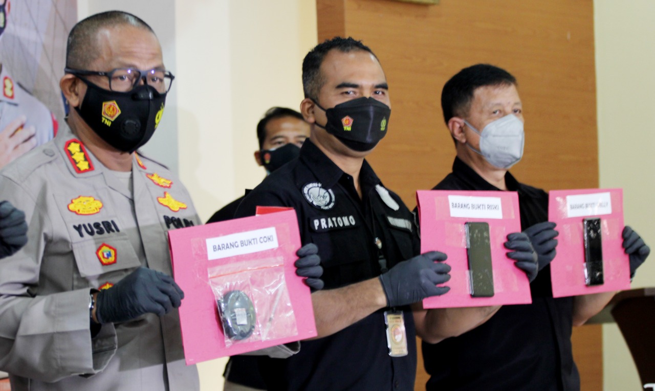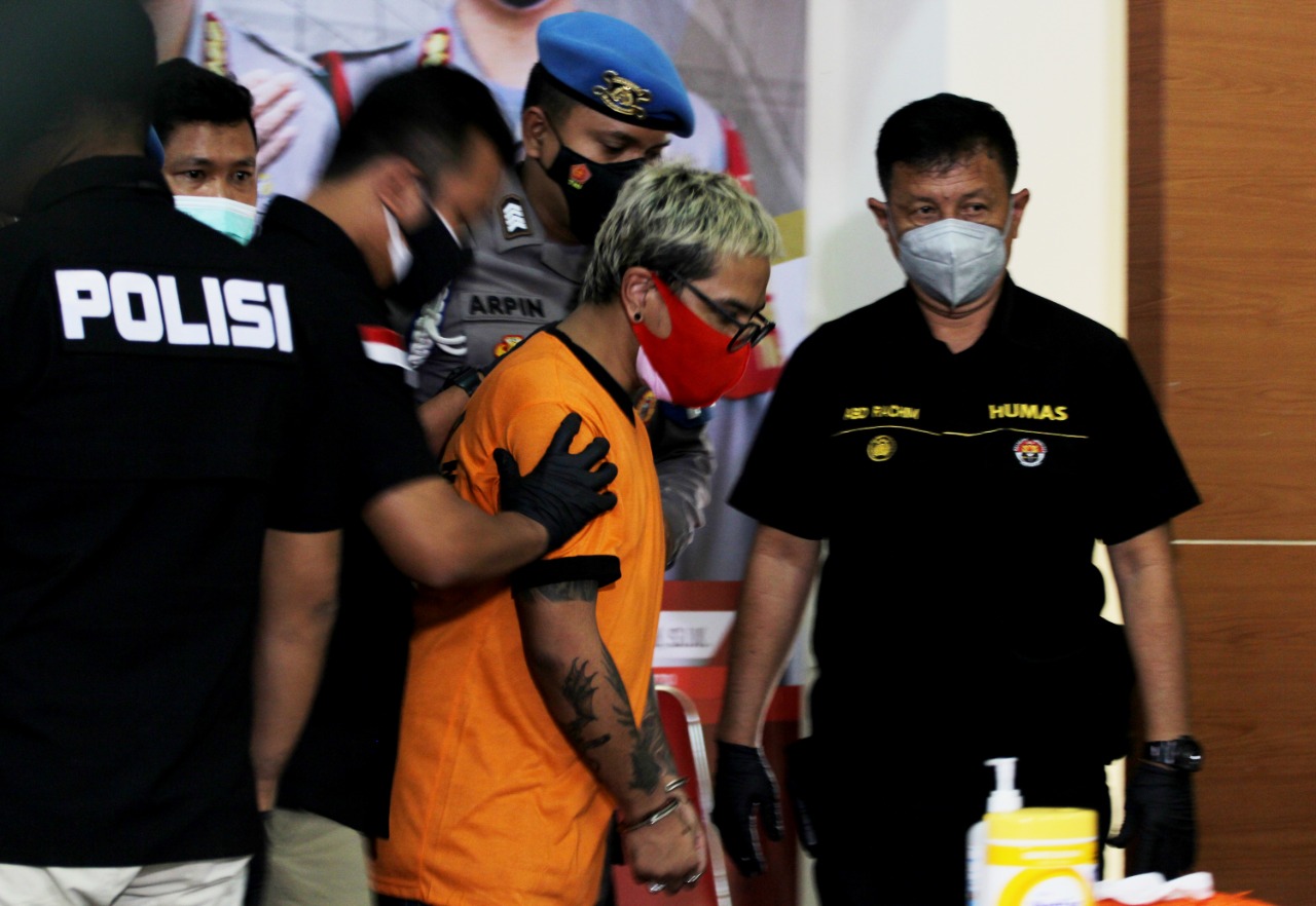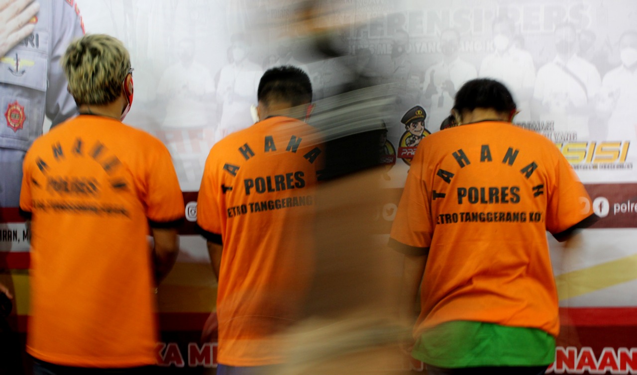 Polres Metro Tangerang Kota yang di wakili oleh Kombes.Pol. Yusri Yunus Kabag Humas Polda Metro Jaya merilis hasil penangkapan RA salah satu Komika dan YouTuber dikediamannya Pagedangan Kabupaten Tangerang pada 31 Agustus 2021, dalam rilisnya polres metro tangerang kota menghadirkan pula WL dan RA beserta barang bukti narkotika jenis sabu seberat 0,3 gram. Sabtu (4/9/21). Megatrust/Cecep