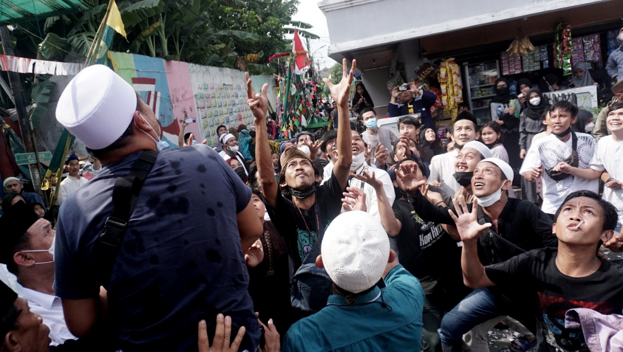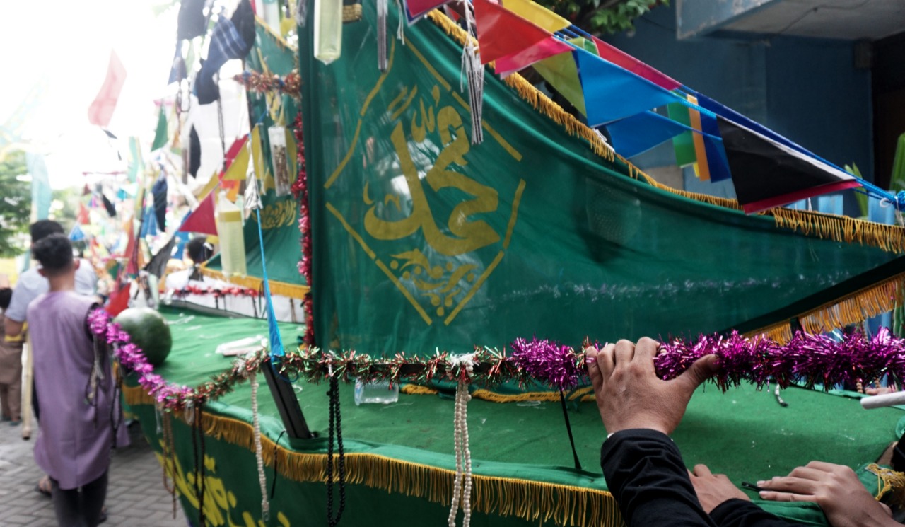 Warga Kali Pasir Pasar Lama Kelurahan Sukasari Kecamatan Tangerang Kota Tangerang merayakan hari kelahiran Nabi Muhammad Saw dengan mengadakan pawai (arak-arakan) mengelilingi wilayah Masjid Kali Pasir, dalam acara tersebut terlihat warga mengawal 2 replika perahu dengan tulisan Allah dan Muhammad saw sebagai silmbol kepemimpinan bagi kehidupan umat manusia di muka bumi, selain itu panitia mengadakan saweran uang kepada warga yang ikut dalam acara tersebut dan acara di tutup dengan ziarah makam pendiri Tangerang di belakang masjid Kali Pasir. Rabu (20/10/21). Megatrust/Dennys