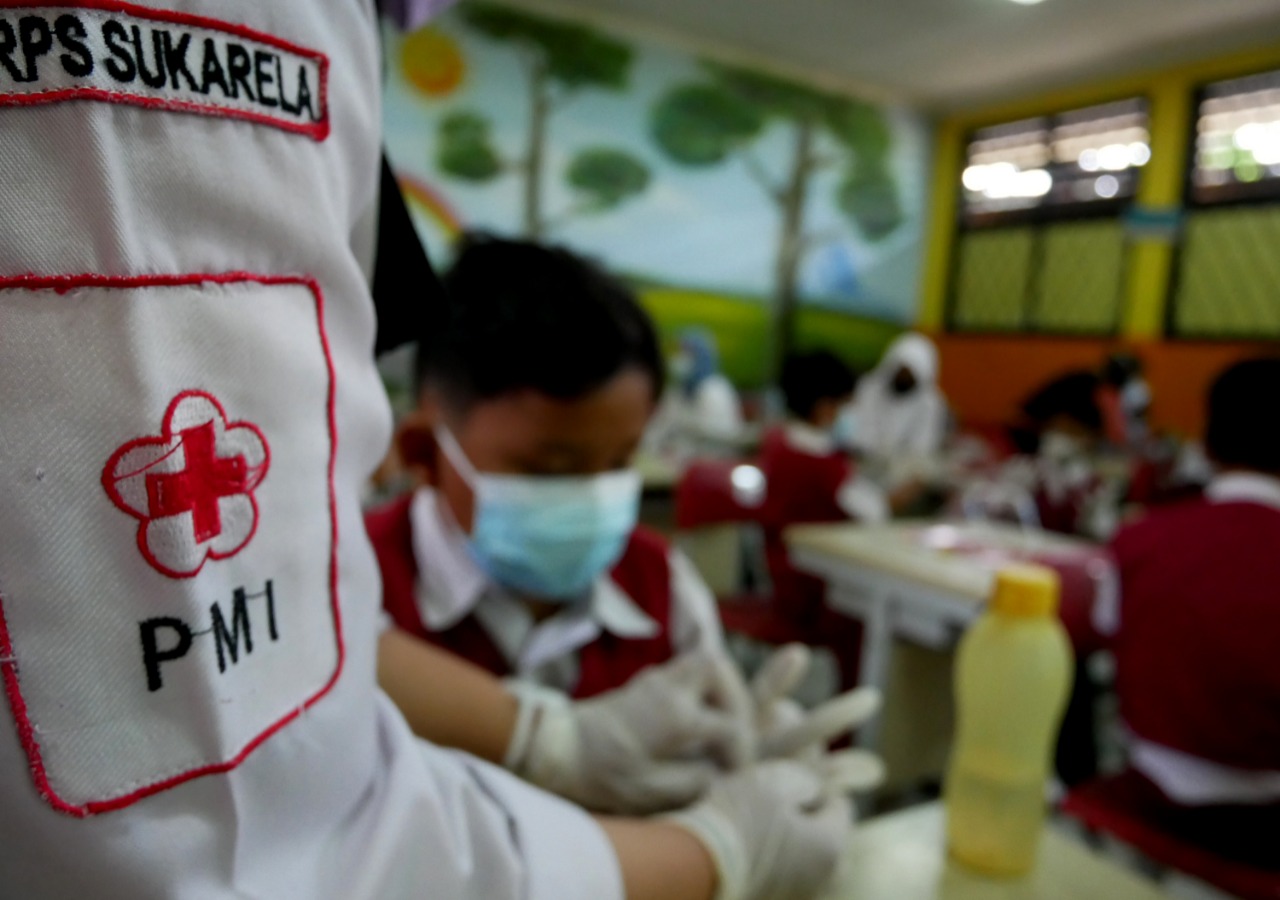 Sebanyak 20 Siswa-siswi Sekolah Dasar Negeri (SDN) Kunciran 8 Kecamatan Pinang Kota Tangerang mendapat pelatihan Pertolongan Pertama Pada Kecelakaan (P3K) oleh Palang Merah Indonesia (PMI) Kota Tangerang. Kegiatan tersebut menjadi satu program Dinas Kesehatan Kota Tangerang melalui Pusat Kesehatan Masyarakat (Puskesmas) Kunciran, mengenal dan melakukan pertolongan pertama menjadi satu pelajaran penting bagi para siswa SD terutama di lingkungan sekolah nya sendiri terutama di tengah pandemi saat ini. Selasa (26/10/21). Megatrust/Dennys