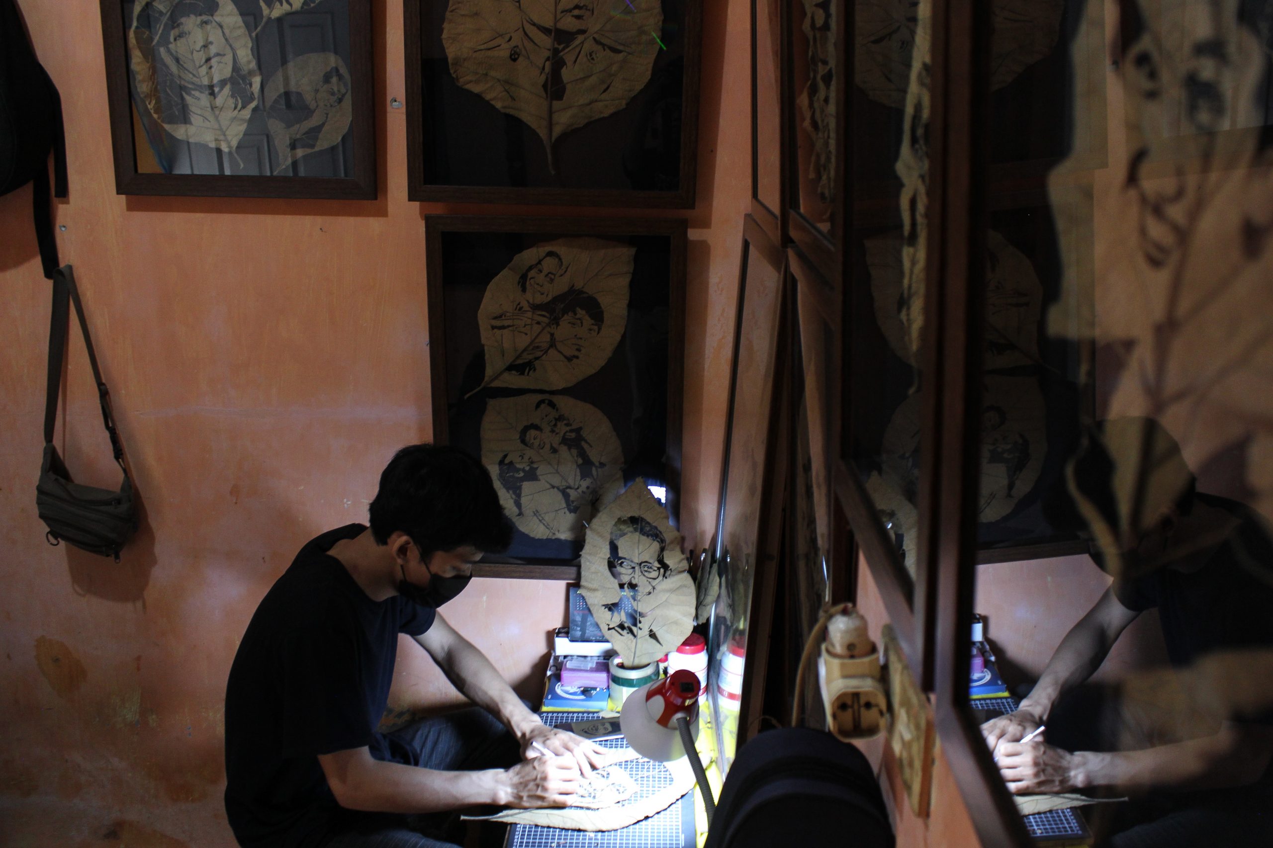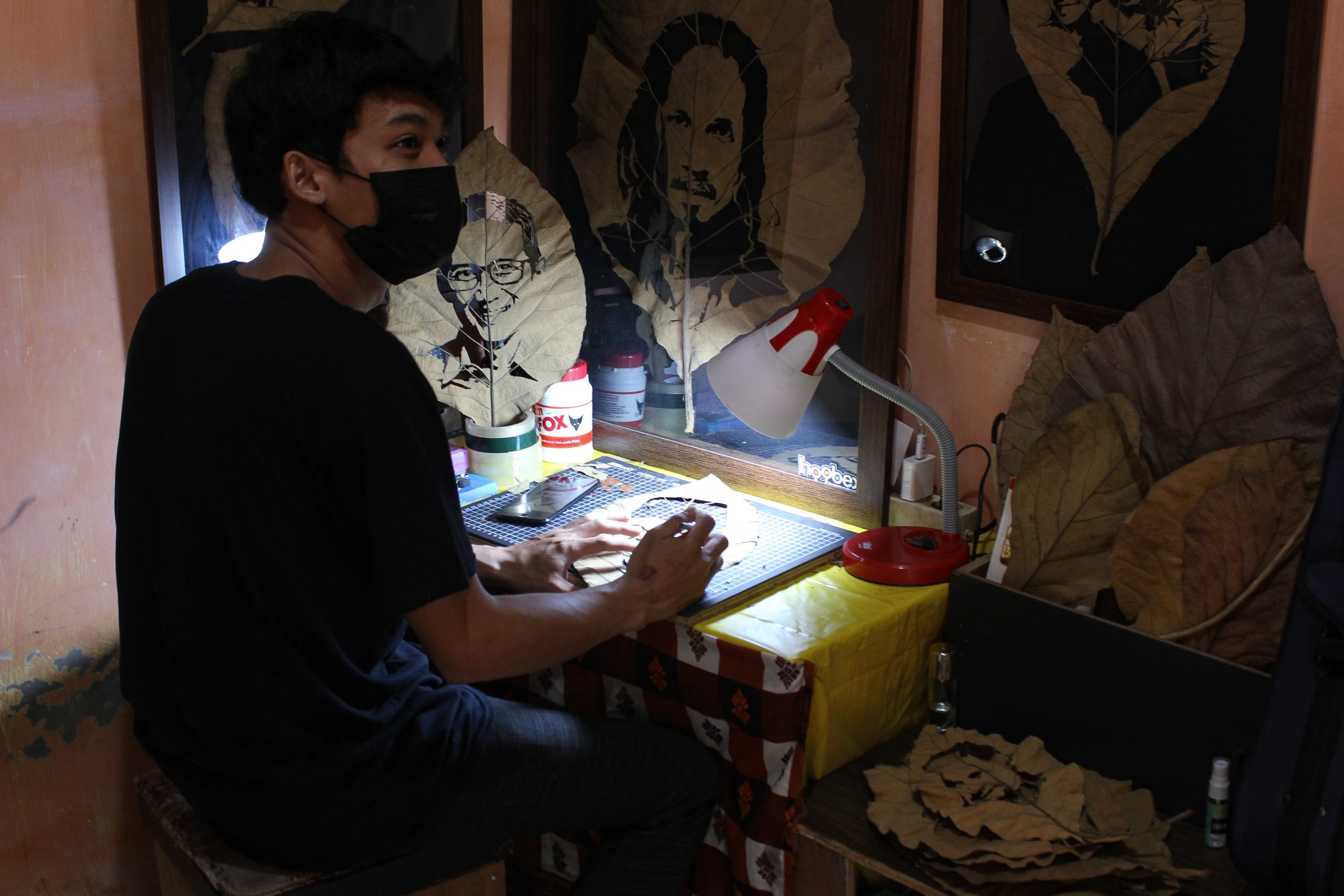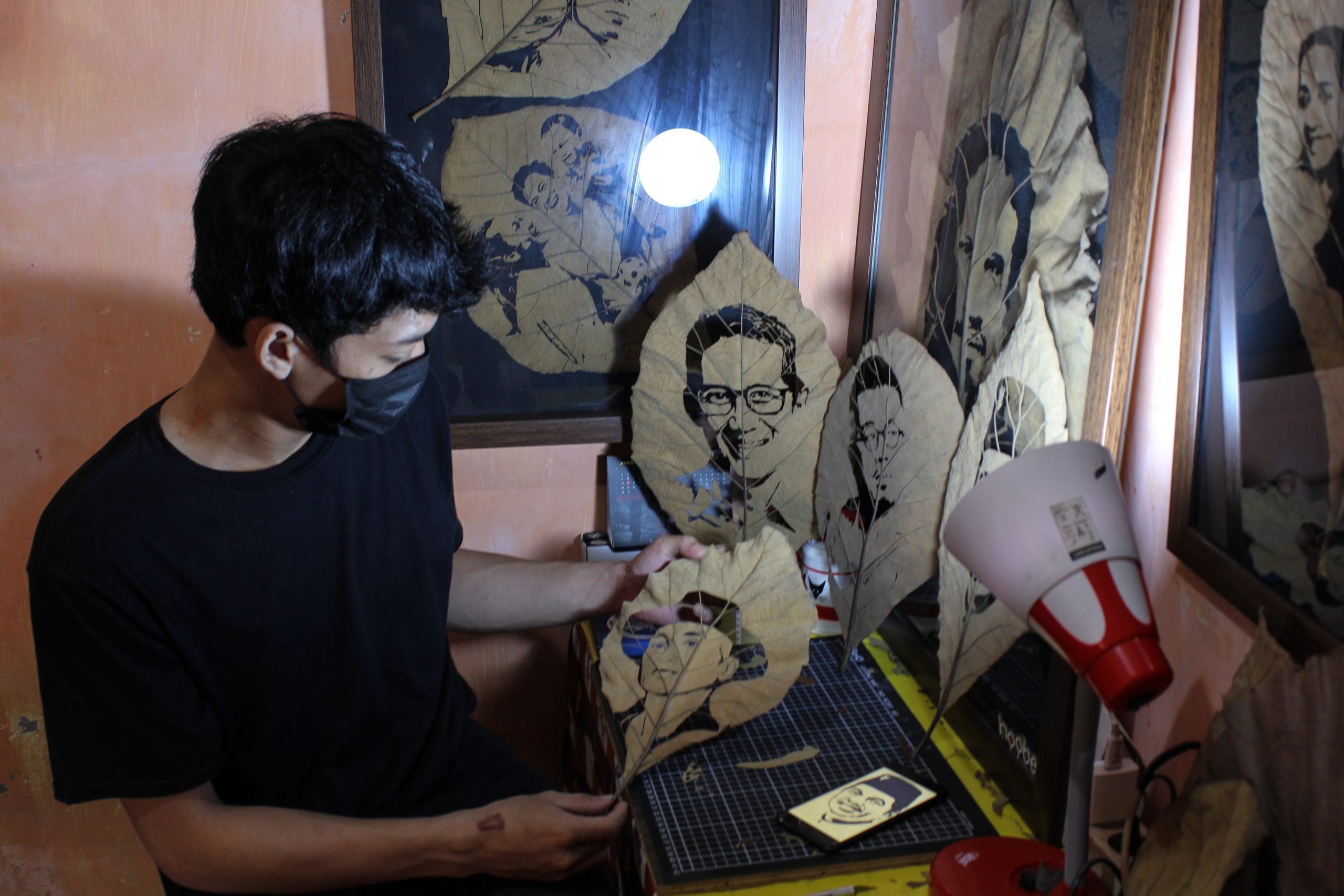 Foto: Seni Lukis Wajah Dari Daun Jati Kering