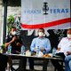 Gubernur Banten Andra Soni dan Walikota Tangerang Sachrudin meninjau lokasi banjir di Perumahan Ciledug Indah Kecamatan Ciledug Kota Tangerang. Putusnya Jalan menuju Jakarta membuat warga mengurangi aktifitas pekerjaannya. Hal tersebut di karnakan Banjir yang menggenangi rumah mereka. Ratusan rumah tergenang air akibat meluapnya sungai Pesanggrahan. Selasa (08/07/25). Megatrust/Cecep Rahmat