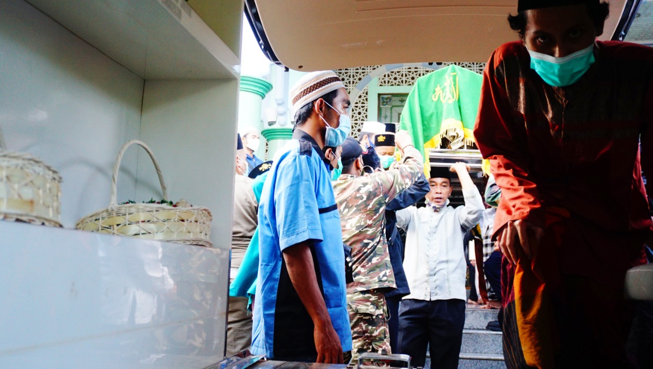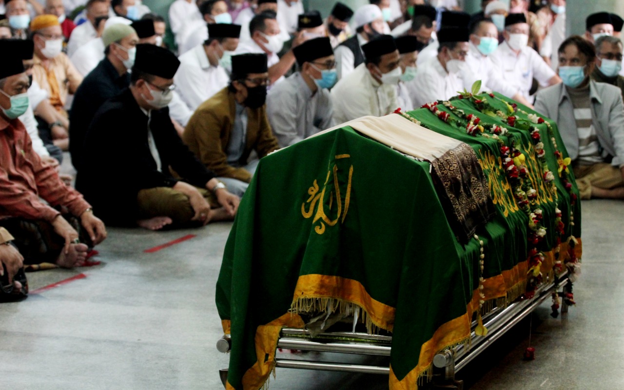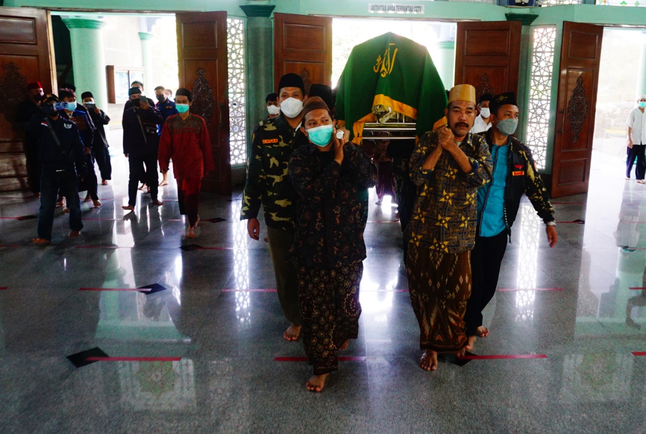 Ketua Dewan Pertimbangan Majelis Ulama Indonesia (MUI) Kota Tangerang tutup usia, almarhum KH. Edi Junaedi Bin Nawawi wafat pada pukul. 10:45 wib. usai memberikan sambutan di acara Rapat Kerja Daerah (Rakerda) MUI Kota Tangerang di gedung MUI Kota Tangerang tadi pagi, terlihat ratusan orang mennyolatkan Jenazah Almarhum di Masjid Al-Azhom, usai di sholatkan jenazah langsung di kebumikan di Tempat Pemakaman Umum Babakan Encle Kecamatan Tangerang. Rabu (15/9/21). Megatrust/Dennys