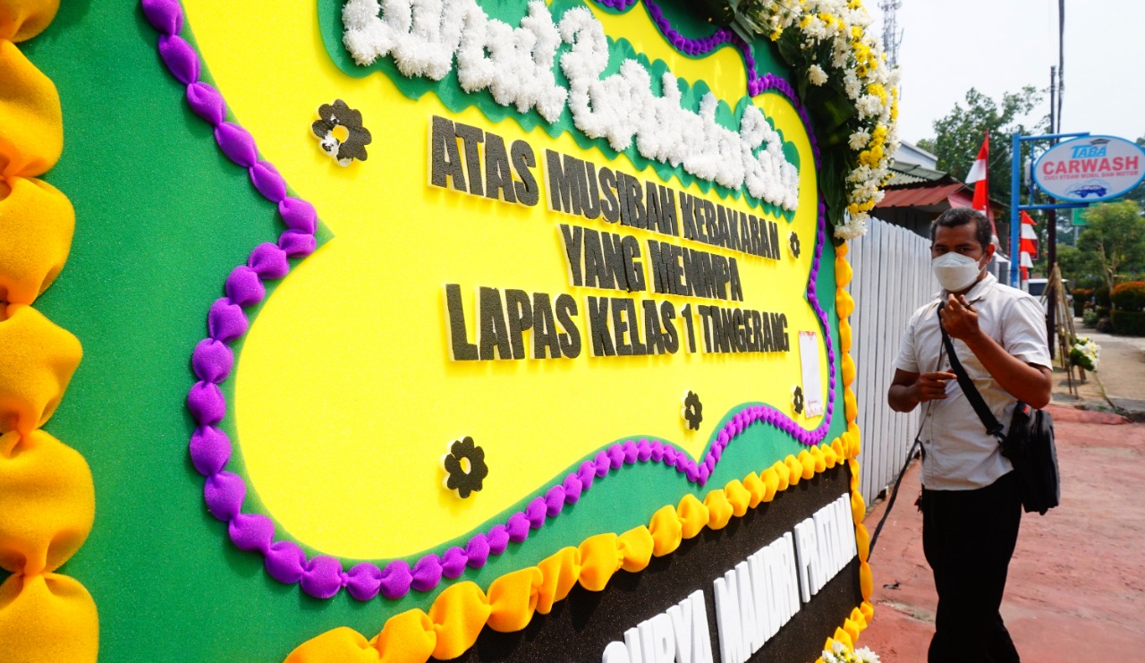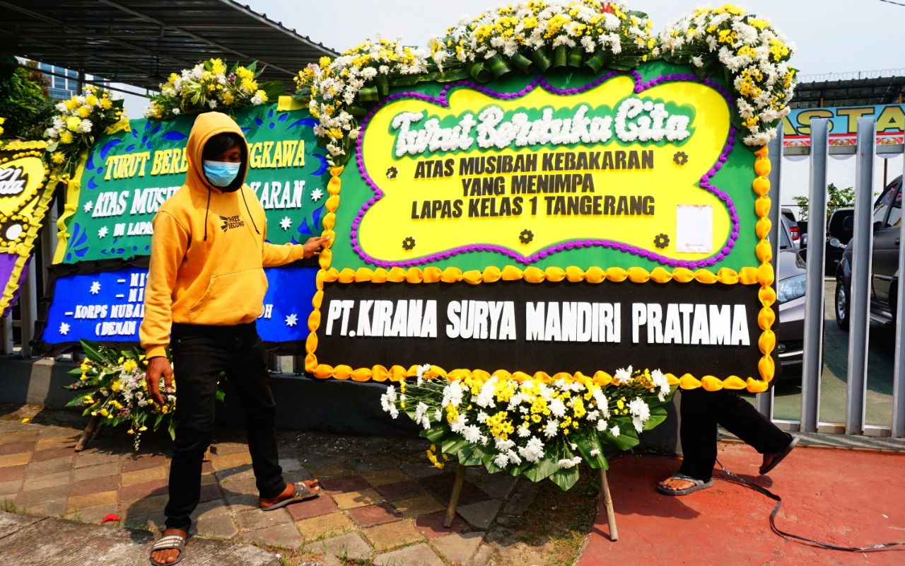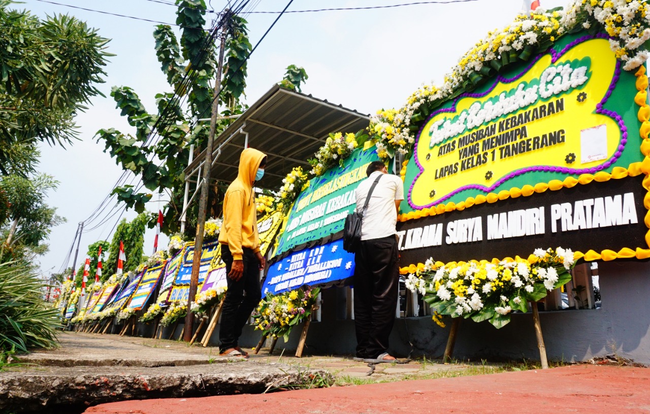 Foto: Usai Kebakaran, LP Klas IA Tangerang Dibanjiri Karangan Bunga