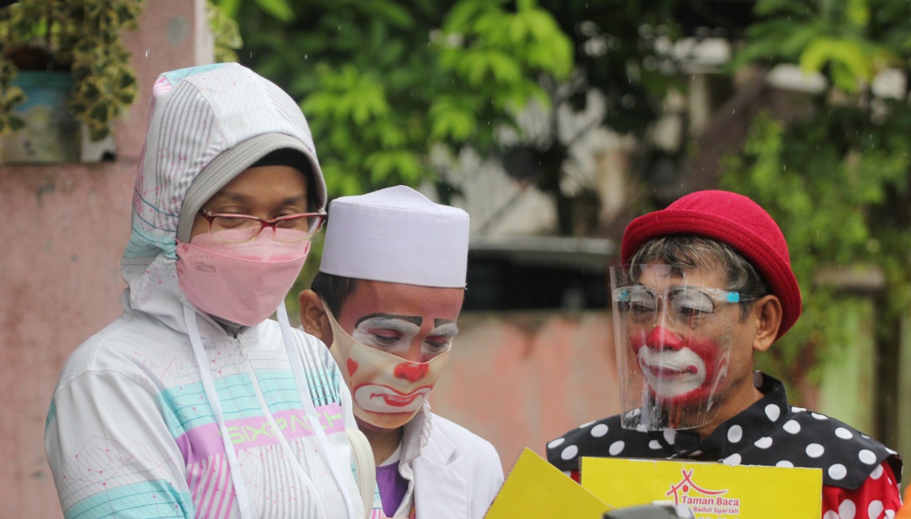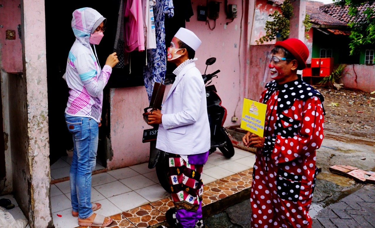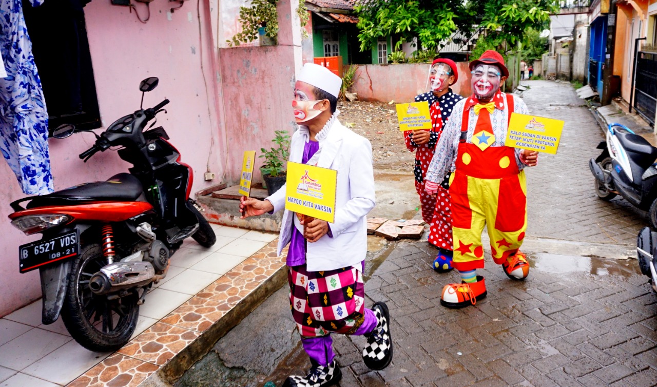 Foto: Ustad Badut Kampanyekan Ajak Vaksin Warga Pinang