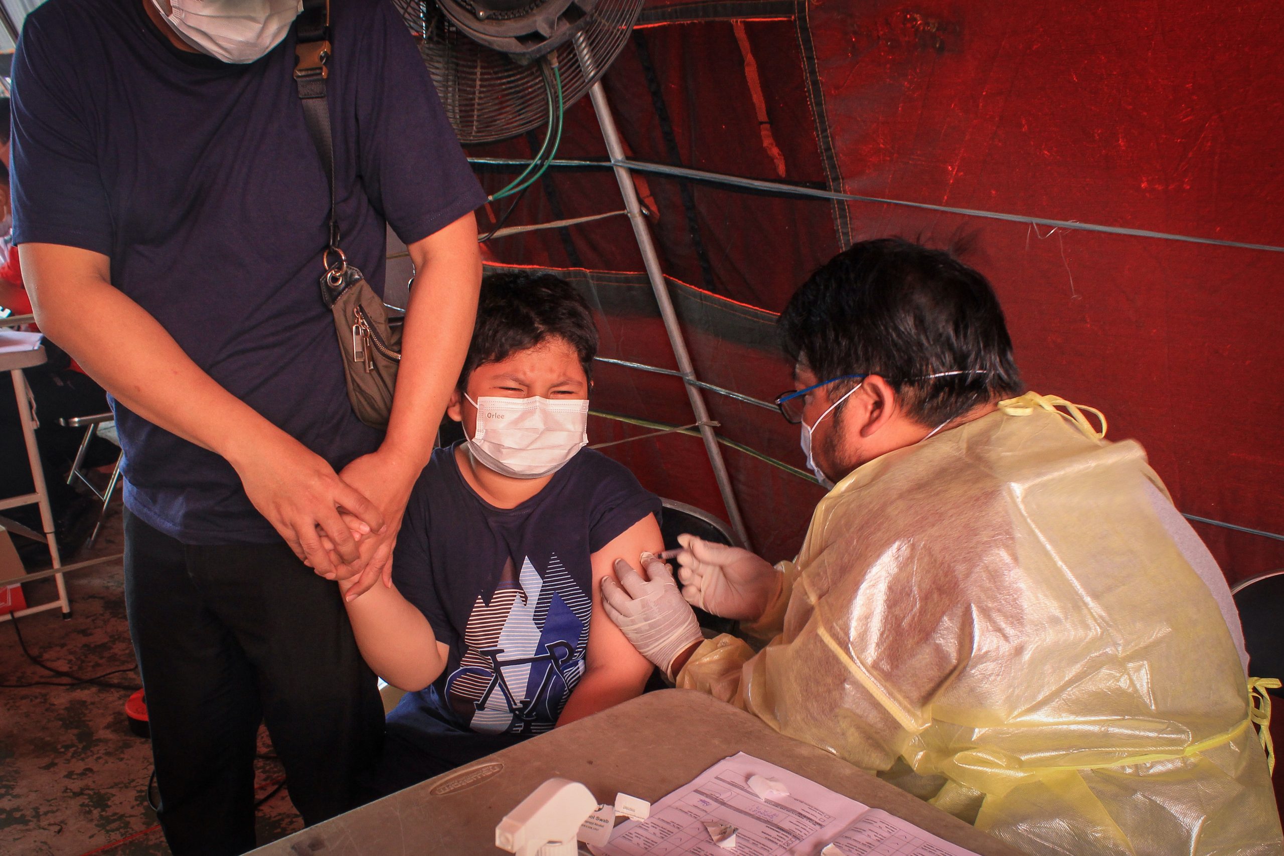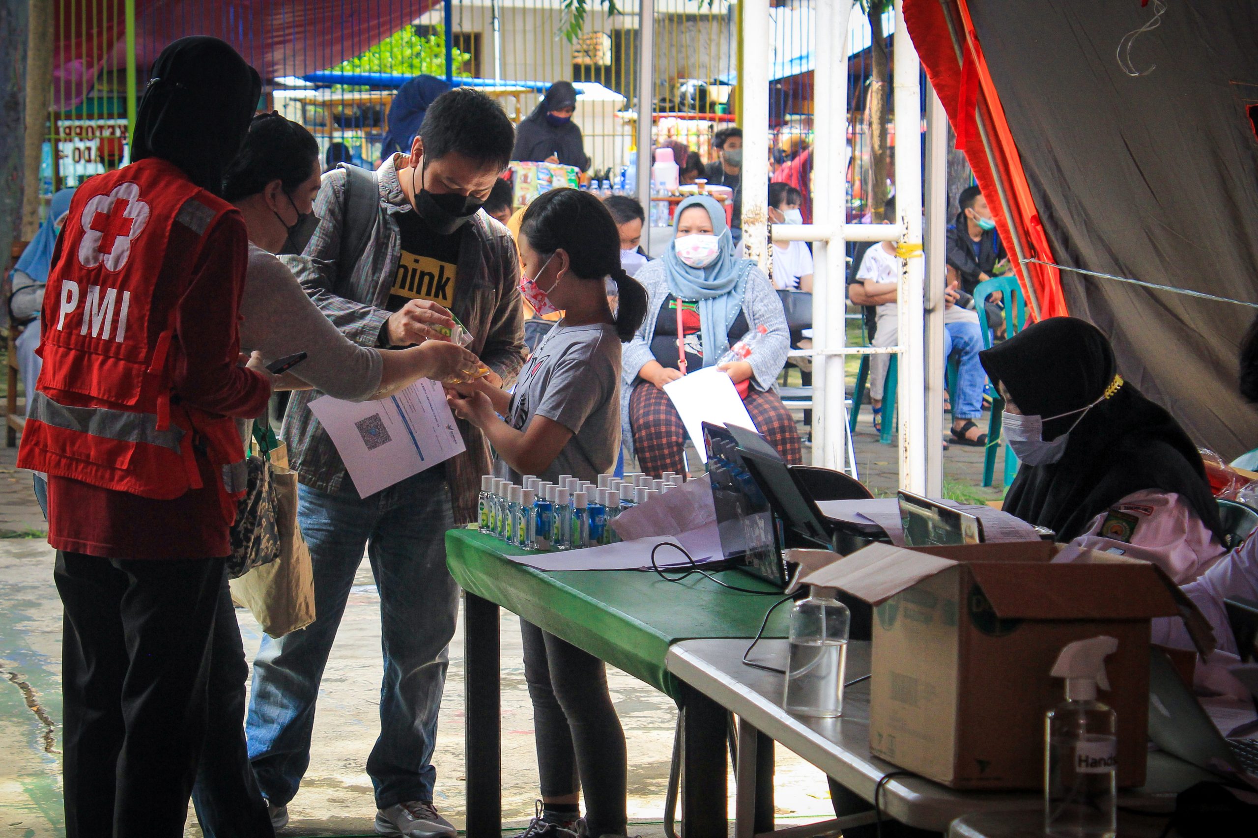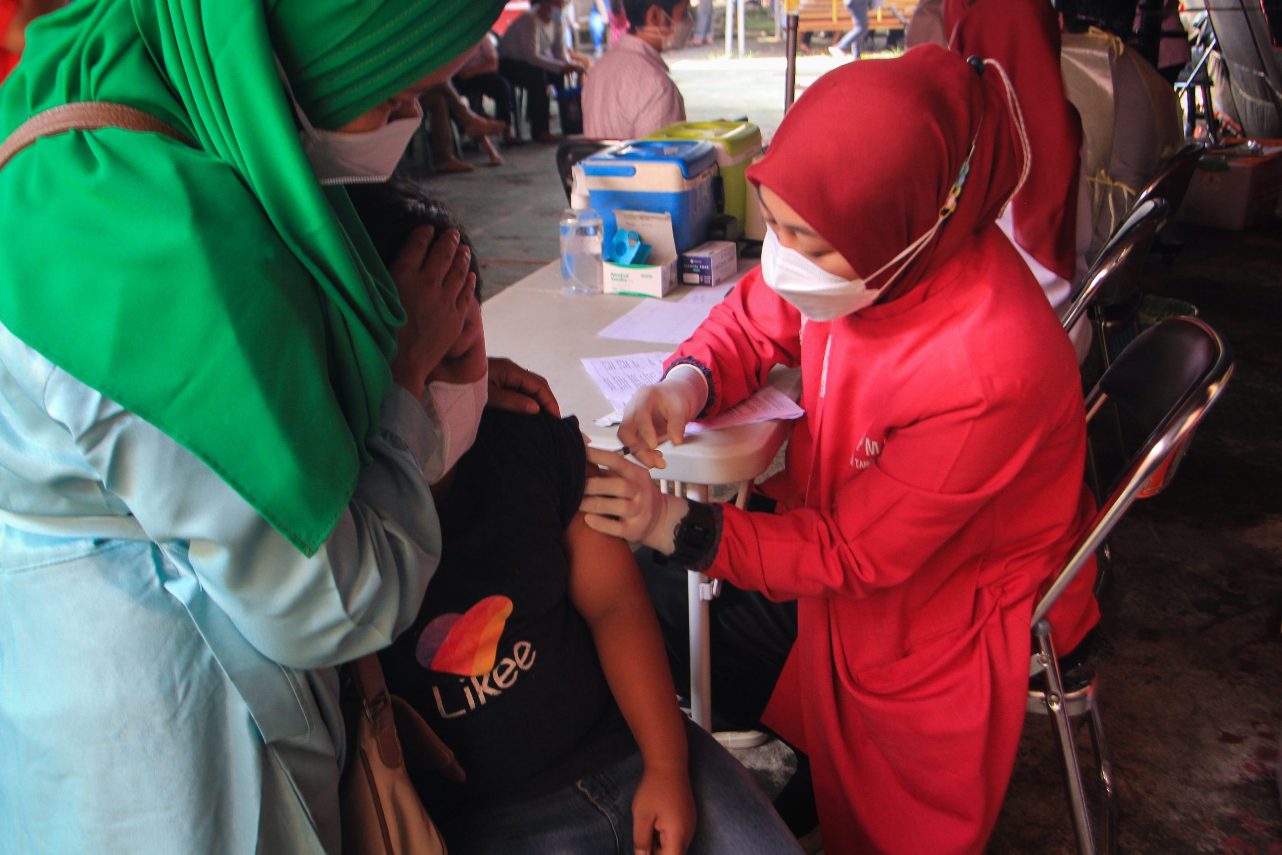 PMI Kota Tangerang bantu dinas kesehatan dan pemerintah kota Tangerang dalam percepatan vaksinasi untuk herd Immunity, kegiatan vaksinasi ini dilakukan untuk anak di bawah umur atau berusia sekitar 6 sampai 11 tahun di markas PMI Kota Tangerang di jalan Mayjen Sutoyo No.15, Sukarasa Kota Tangerang, Sabtu (18/12/21). Megatrust/Cecep