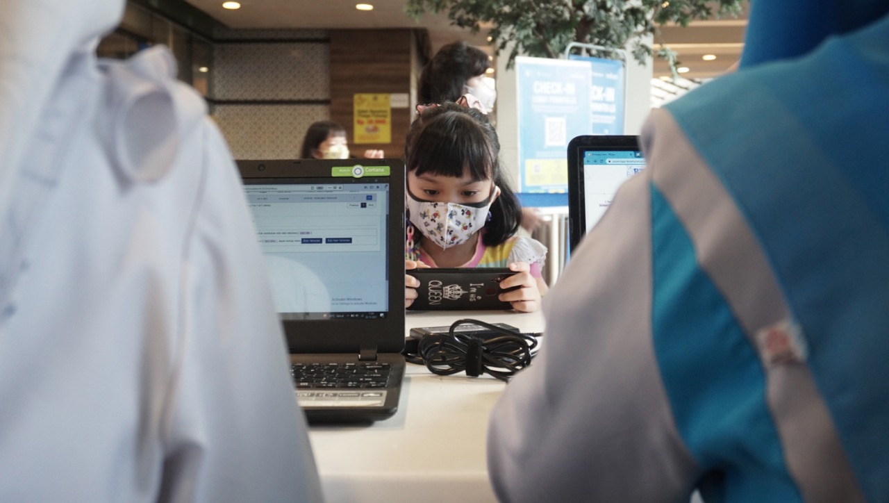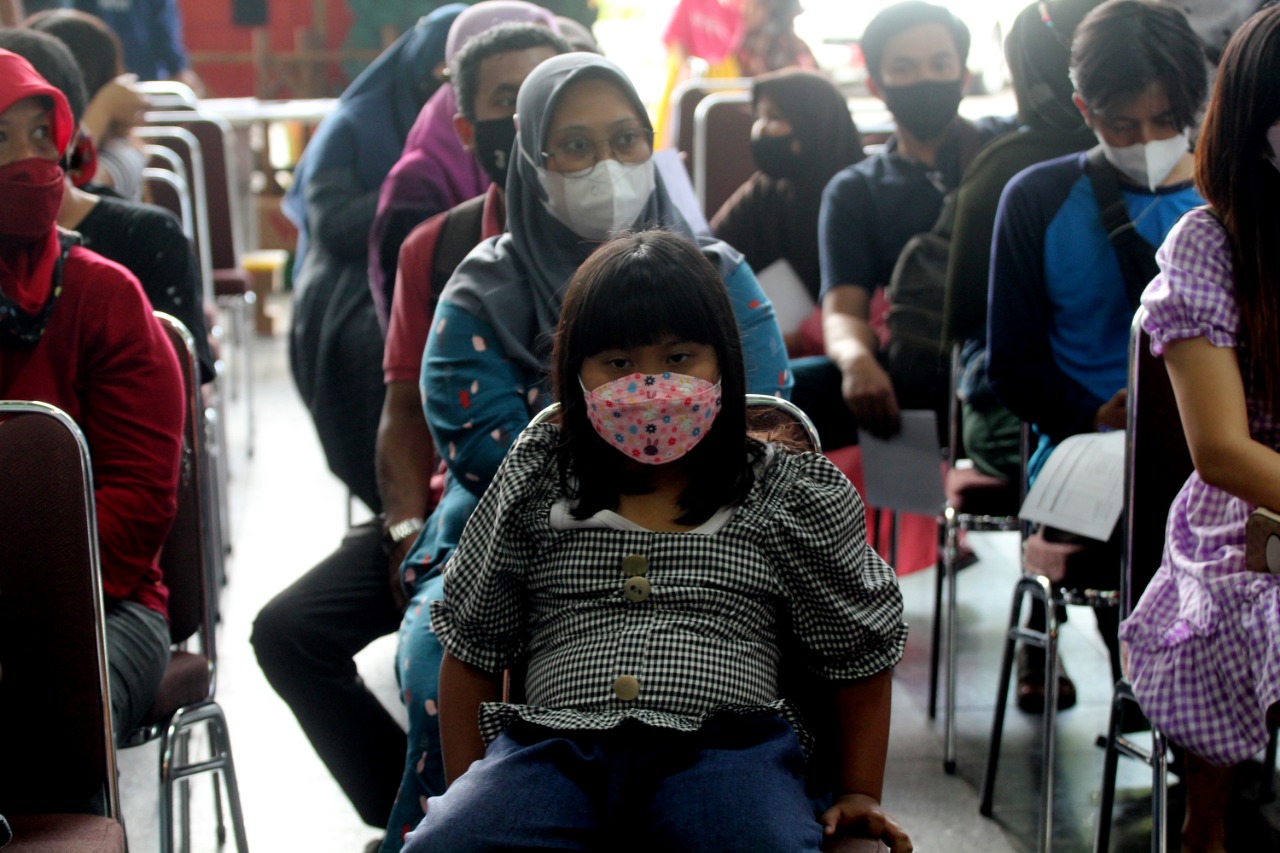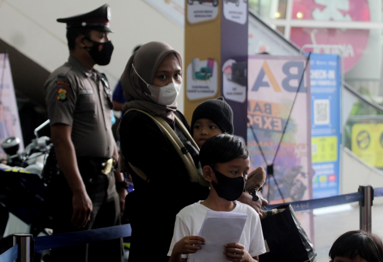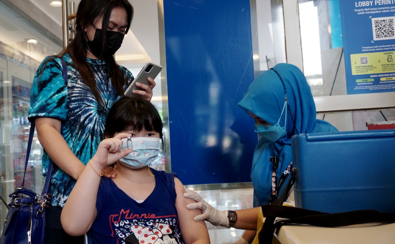 Moment hari ibu tepat di tanggal 22 Desember ini menjadi satu peristiwa dimana kewajiban seorang anak untuk menunjukan kecintaannya kepada seorang ibu, banyak cara untuk menujukan rasa sayang kepada ibu, seperti halnya dimasa pandemi saat ini, dengan mengikuti Vaksin baik bagi anak-anak maupun mereka yang sudah dewasa guna mencegah penularan Covid-19 terutama kepada keluarga, seperti terlihat sejumlah anak-anak umur 6-12 sedang menjalankan vaksin yang di adakan Dinas Kesehatan Kota Tangerang yang bekerjasama dengan Tangcity Mall ini para ibu –ibu mendapampingi anaknya yang sedang vaksin. Rabu (22/12/21). Megatrust/Dennys