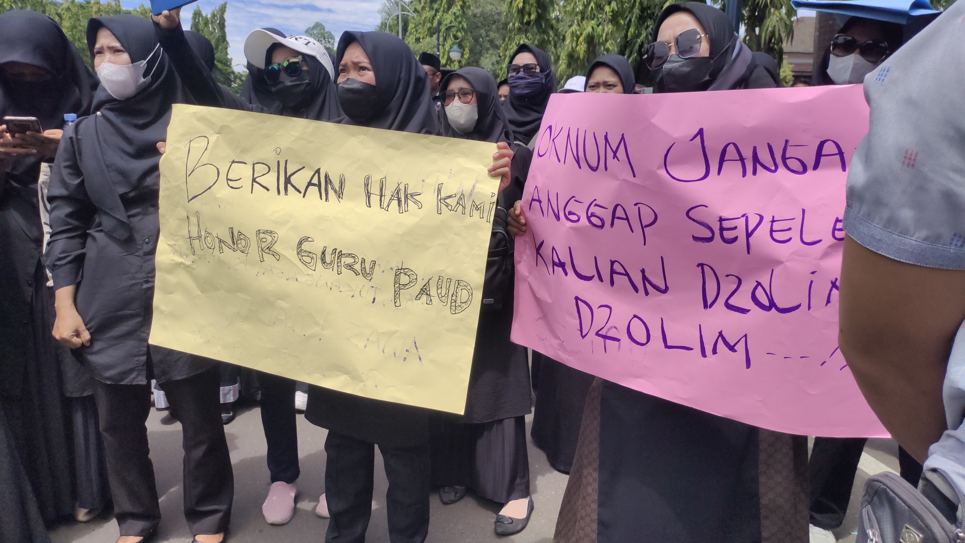 Masa aksi menuntut Pemkot Cilegon bisa membayar semua honor guru madrasah, guru PAUD, hingga honor kader posyandu yang yang belum terbayarkan pada tahun 2024 lalu.