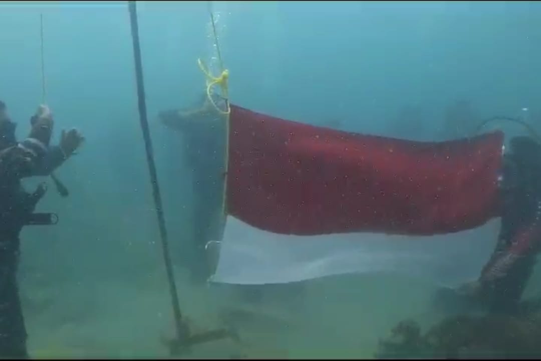 Pihaknya bersama Lanal Banten menggelar upacara pengibaran bendera merah putih di bawah laut Selat Sunda.