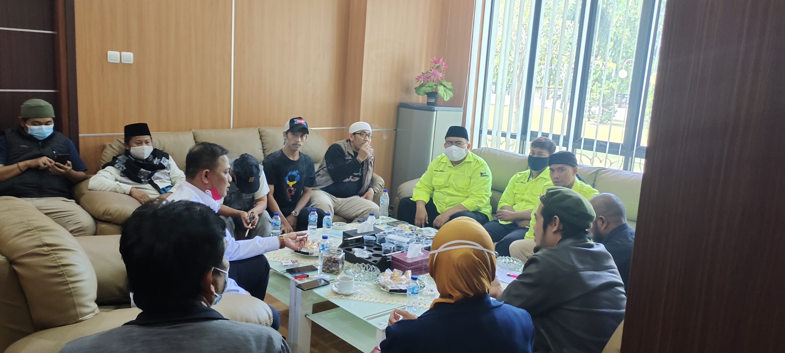 MEGATRUST.CO.ID, CILEGON – Sejumlah ormas dan mahasiswa datangi ketua DPRD Kota Cilegon Isro Mi’raj, Selasa (7/9/2021). Kedatangan ormas dan mahasiswa itu merupakan buntut dari kericuhan saat Paripurna pembahasan KUA PPAS 2022 pada Senin 6 September 2021.
