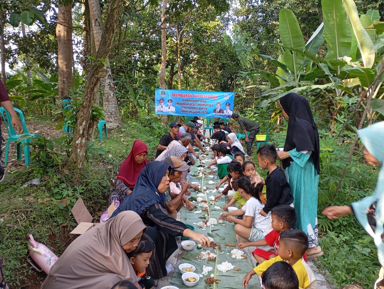 Dalam peresmian itu, turut diadakan makan bancakan bersama warga di atas jalan paving blok yang baru diresmikan.