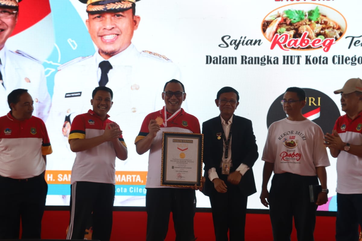 Megatrust.co.id, CILEGON – Pemkot Cilegon tercatat di Museum Rekor Dunia Indonesia (MURI) karena telah menyajikan menu rabeg sebanyak 2.400 porsi, di halaman kantor Wali Kota Cilegon, Jalan Soedirman, Senin 8 Mei 2023.