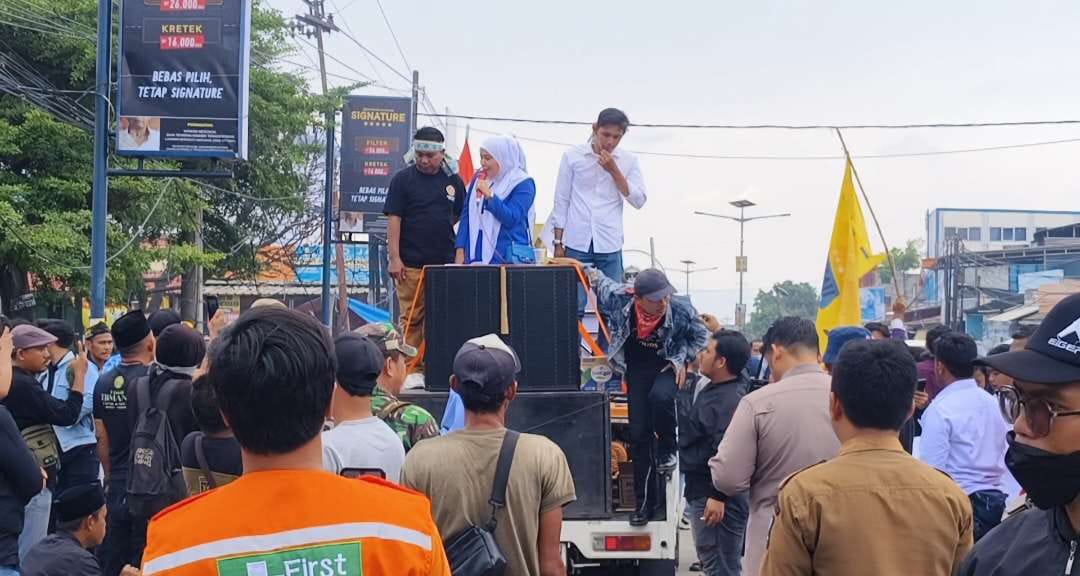Di hadapan massa, Desi menandatangani fakta integritas sebagai bentuk komitmen untuk menindaklanjuti aspirasi warga.